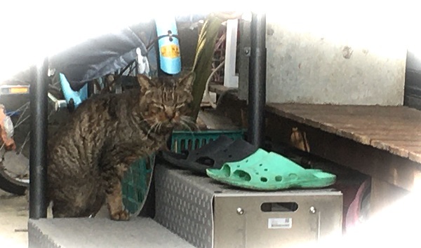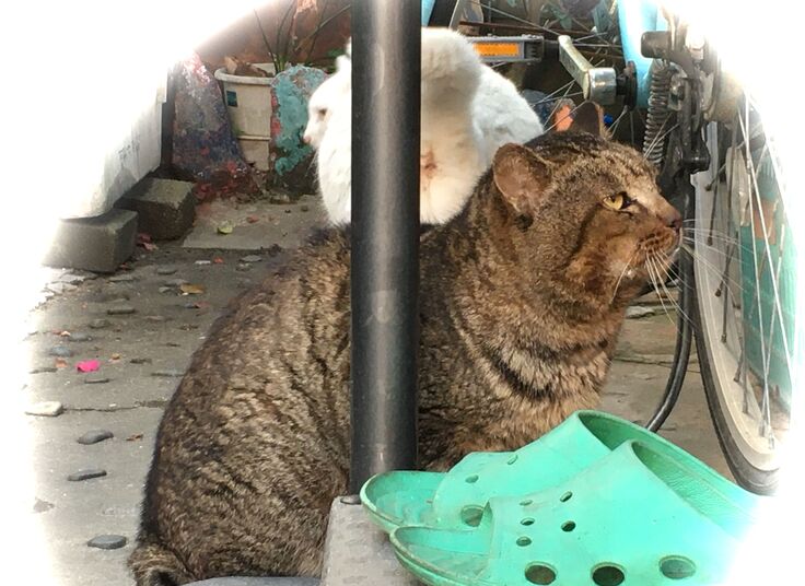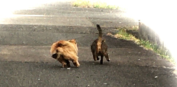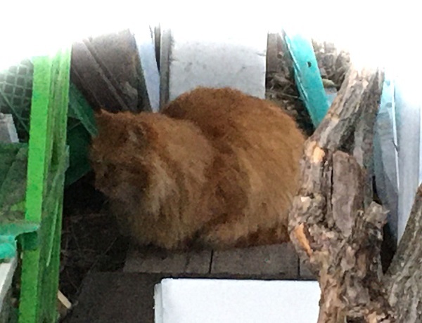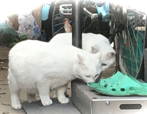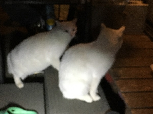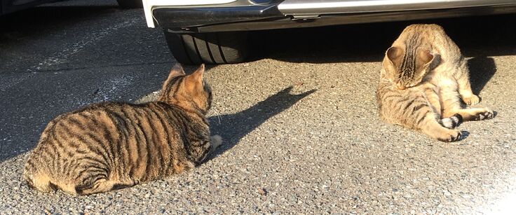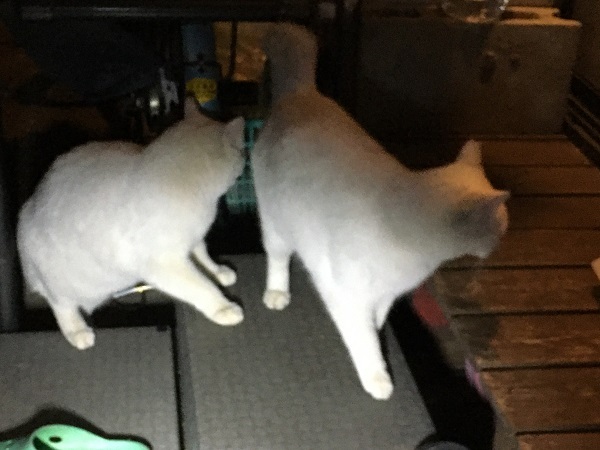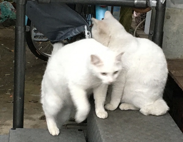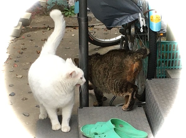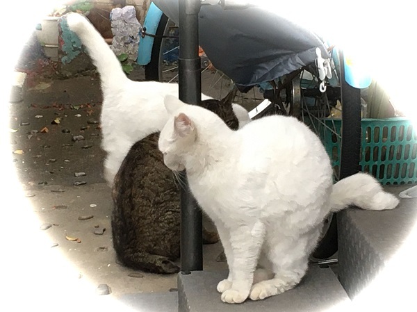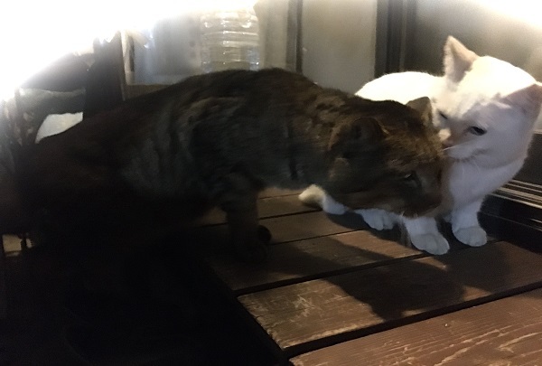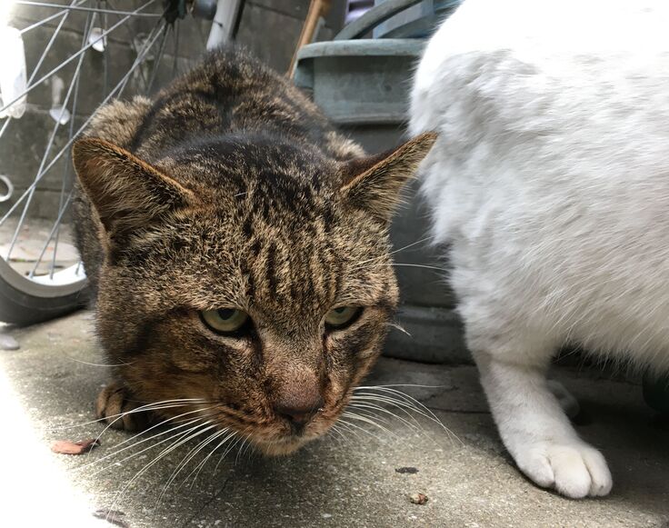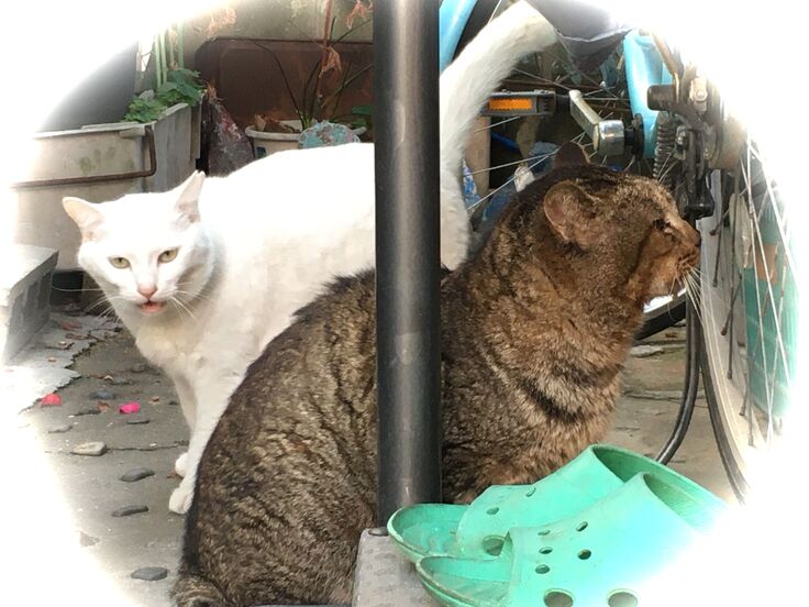 17:52 やまだ電機にて。大らかな茶トラと器の小さい子。
