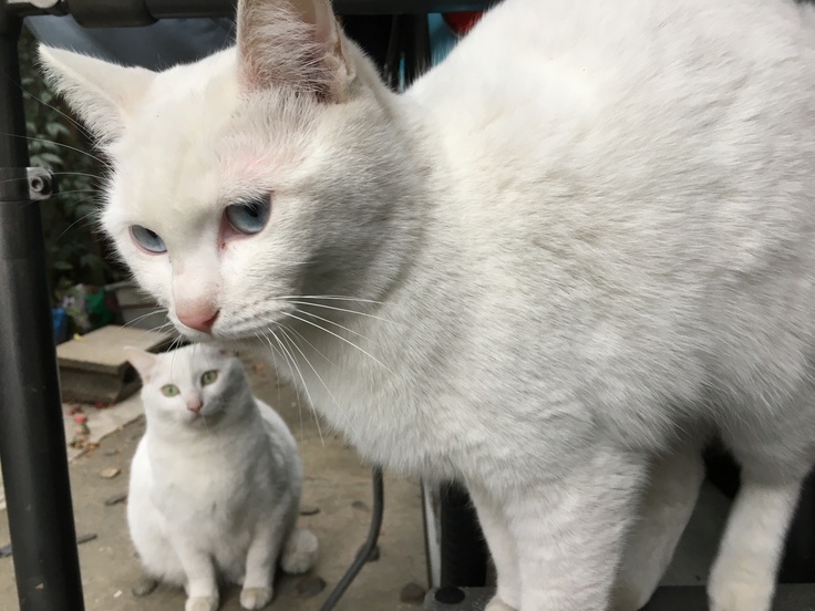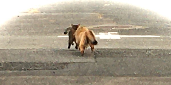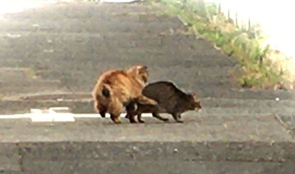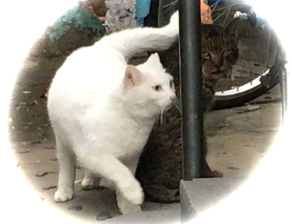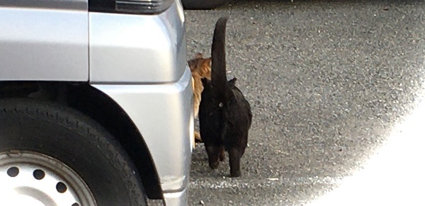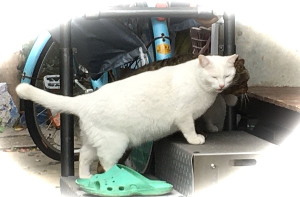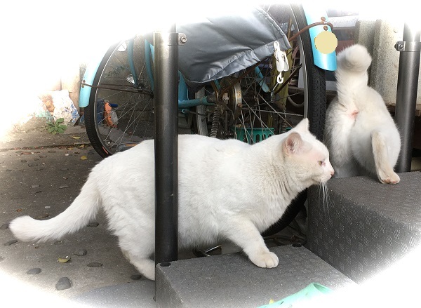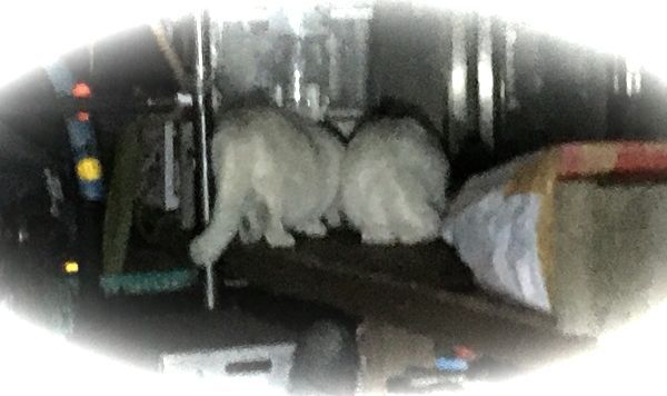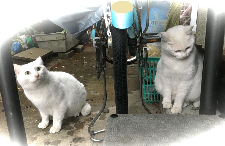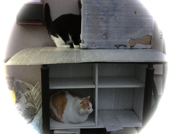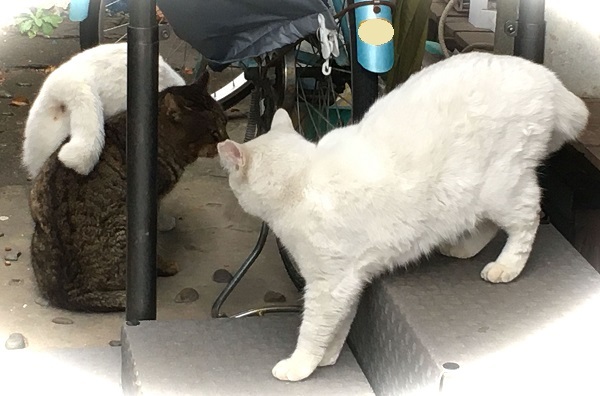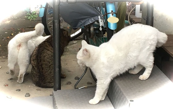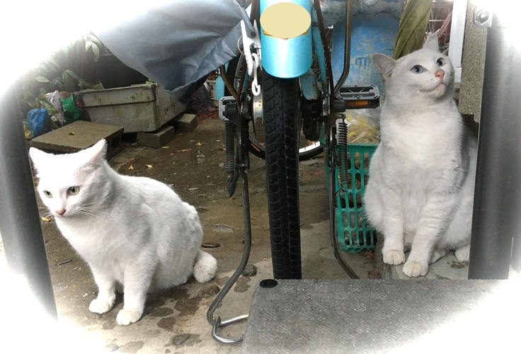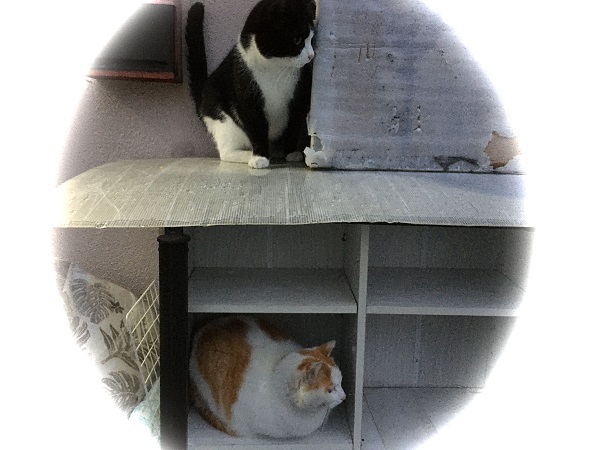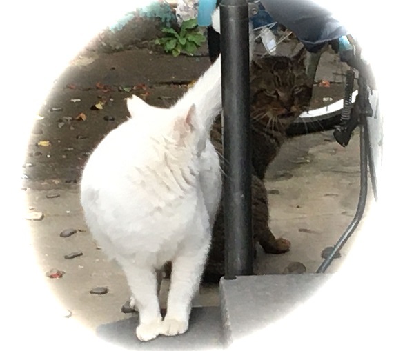 17:52 やまだ電機にて。大らかな茶トラと器の小さい子。