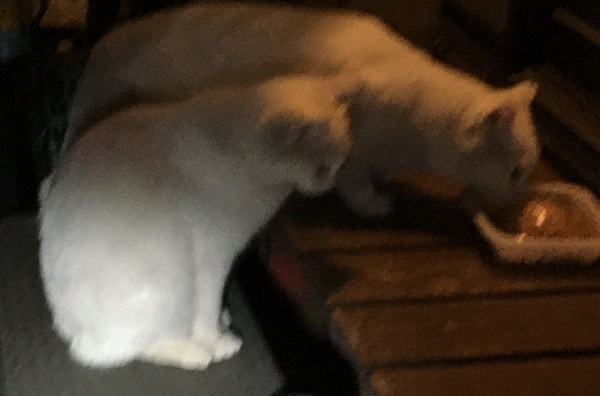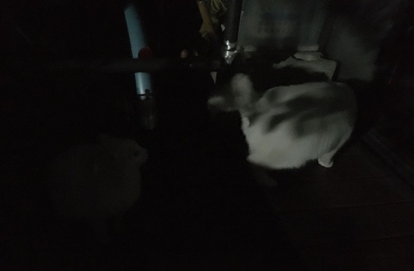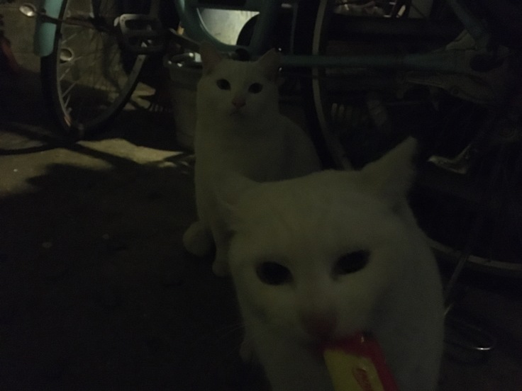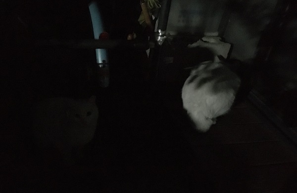 と、お声があったので、お部屋に入らせてもらい、言われるとおりにカリカリを持ち出して、猫たちに与えました。