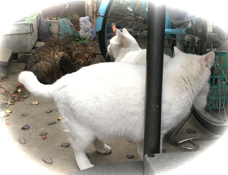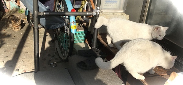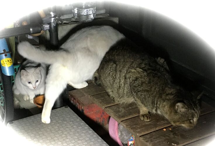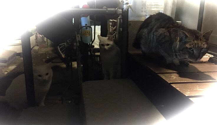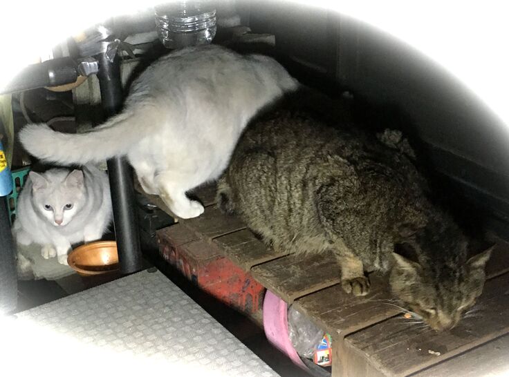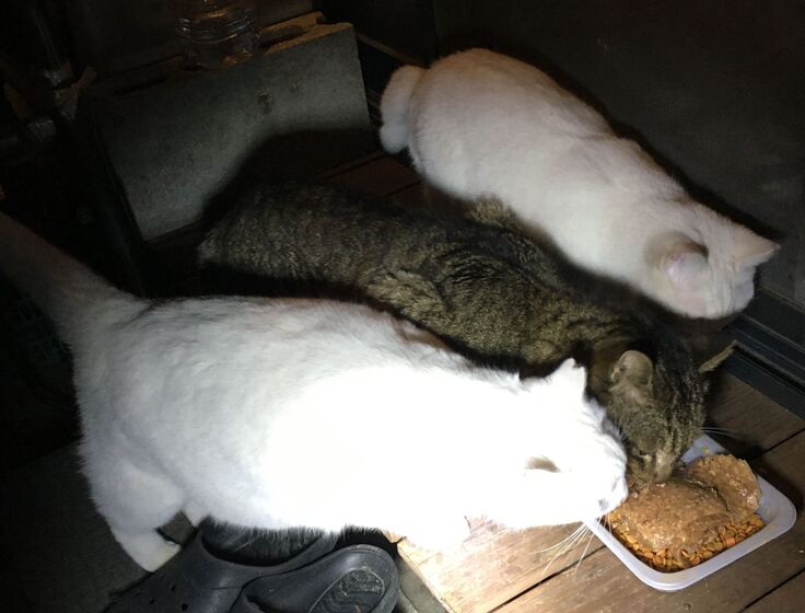 猫たちは長年暮らしたこの場所に、今でも遊びにやってきます。