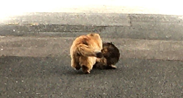 17:06 避難所に着きました。琥珀、赤玉、流児、男鹿。