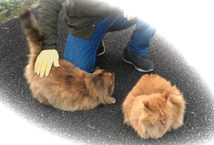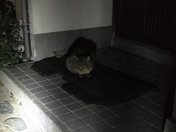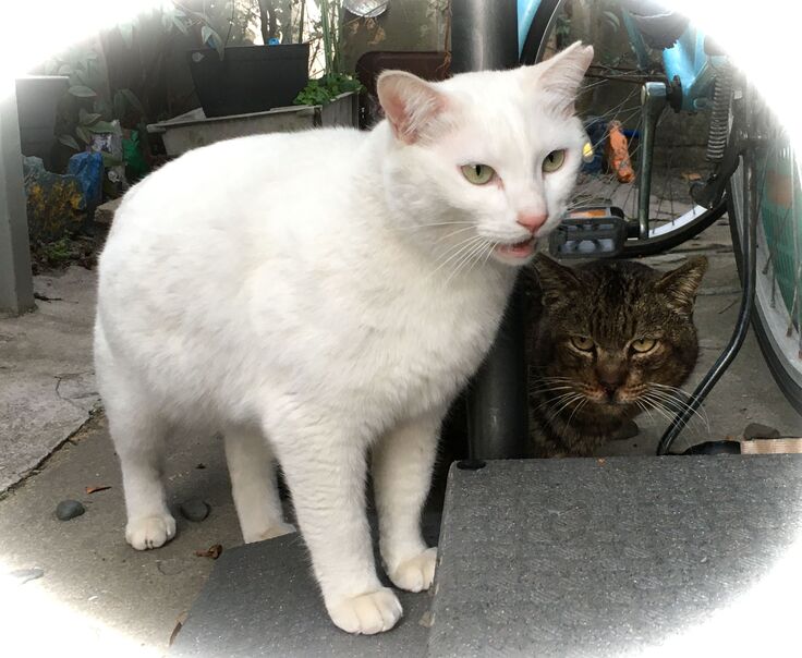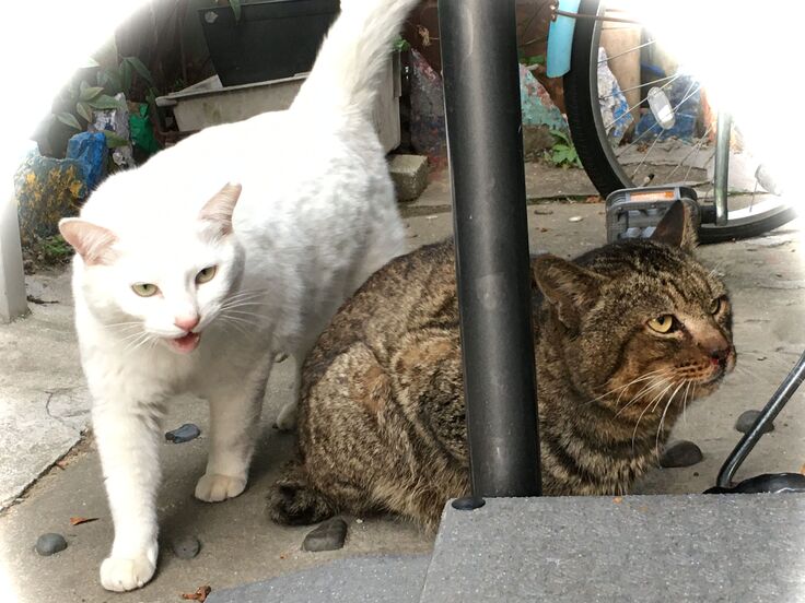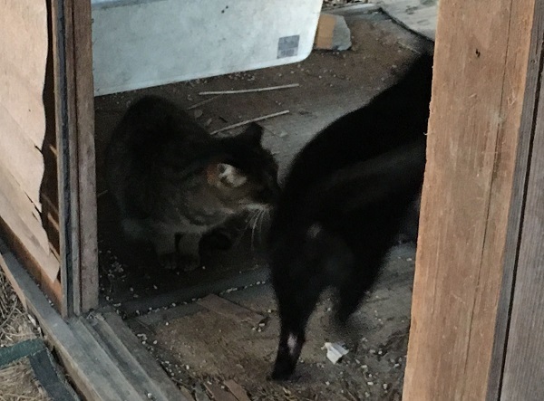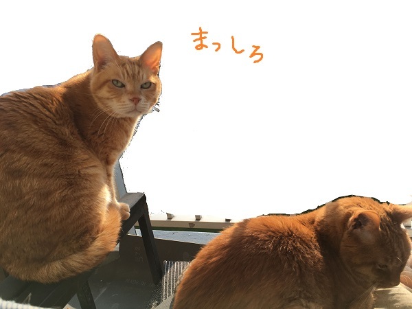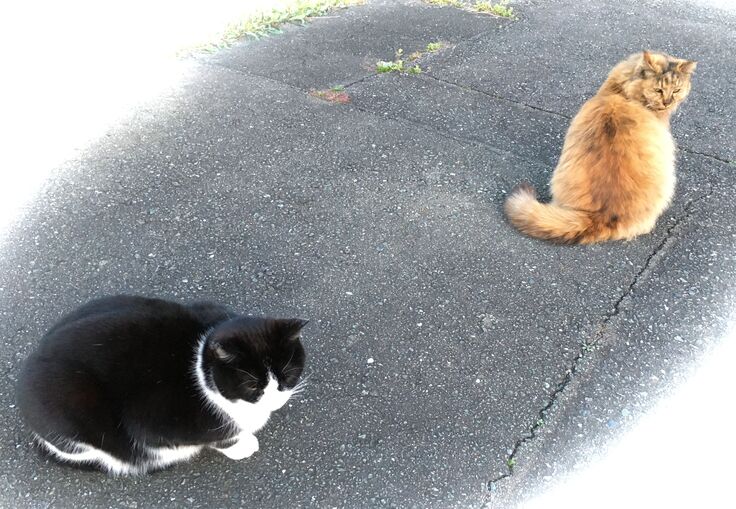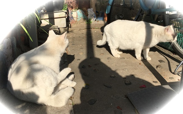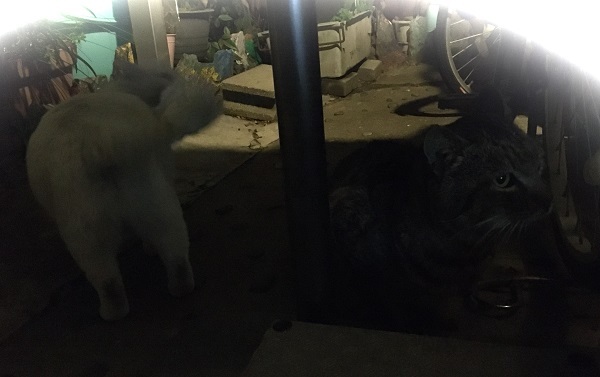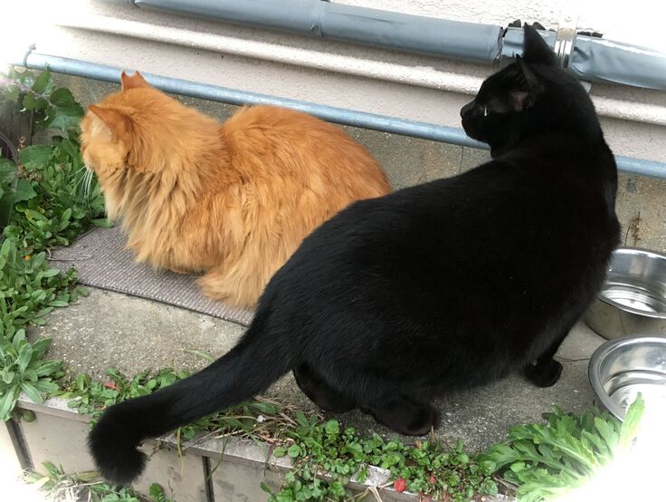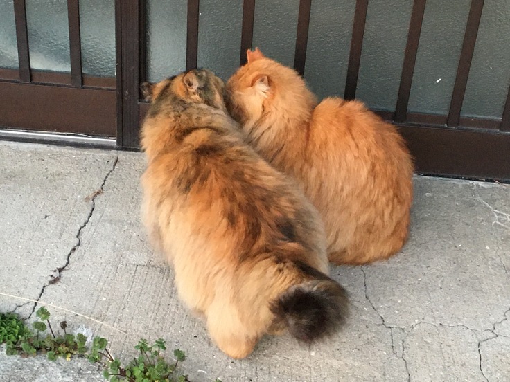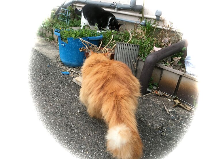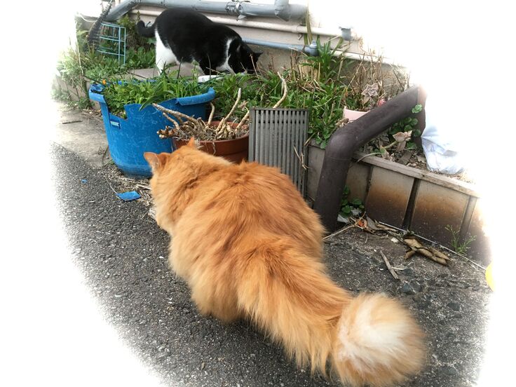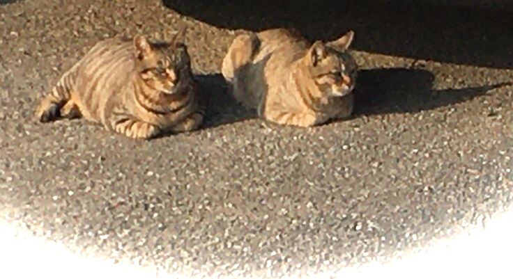 ジブリ邸にて、大らかな茶トラと器の小さい子。