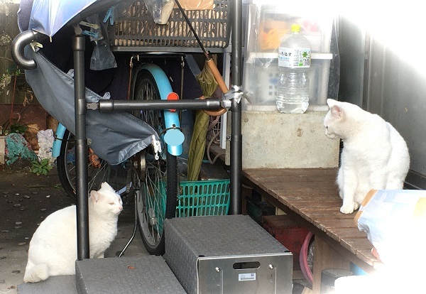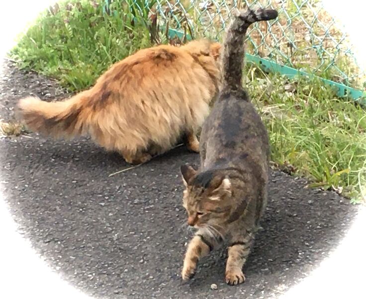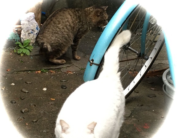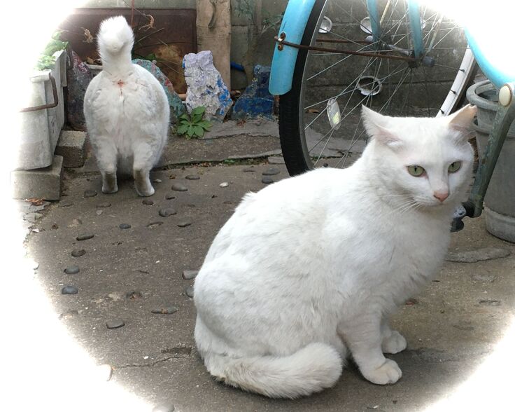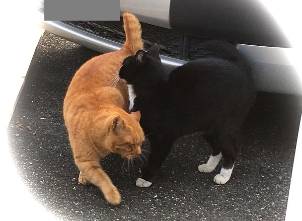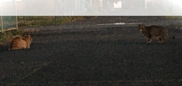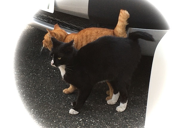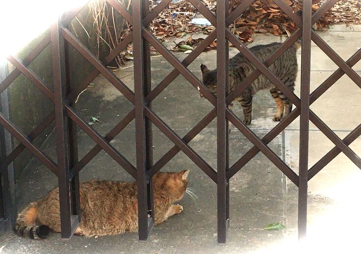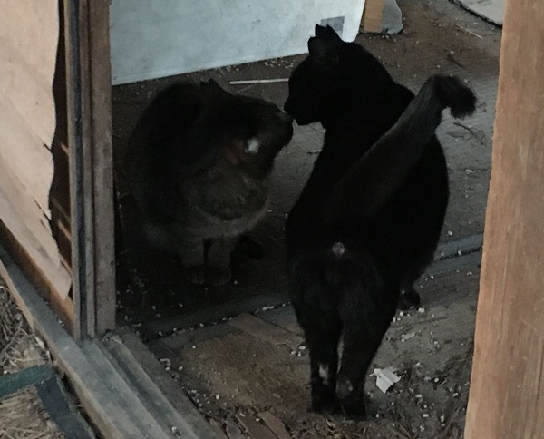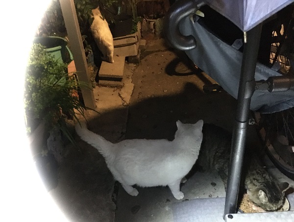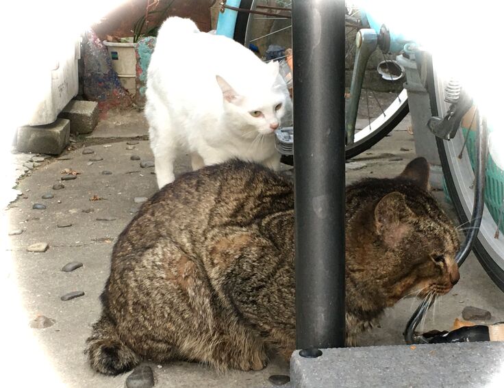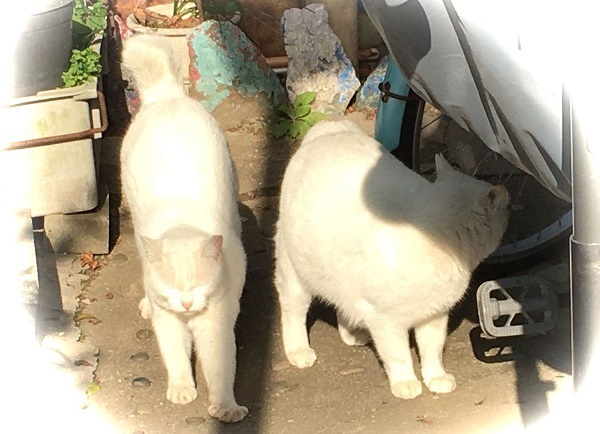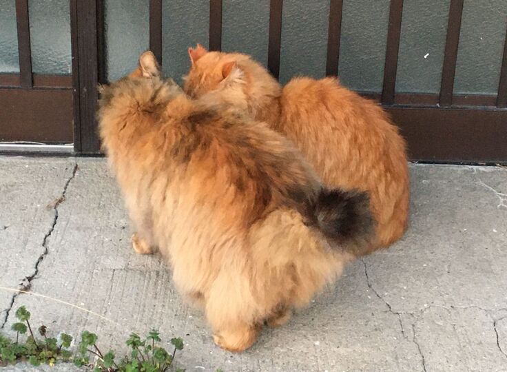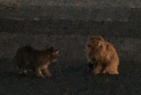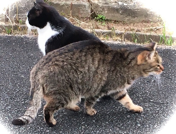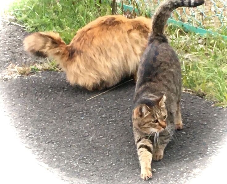 ジブリ邸にて、大らかな茶トラと器の小さい子。