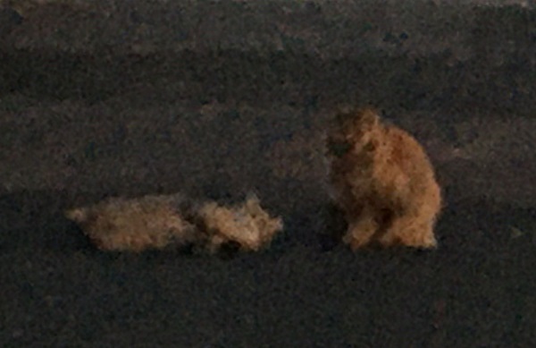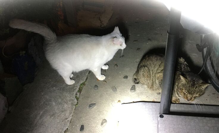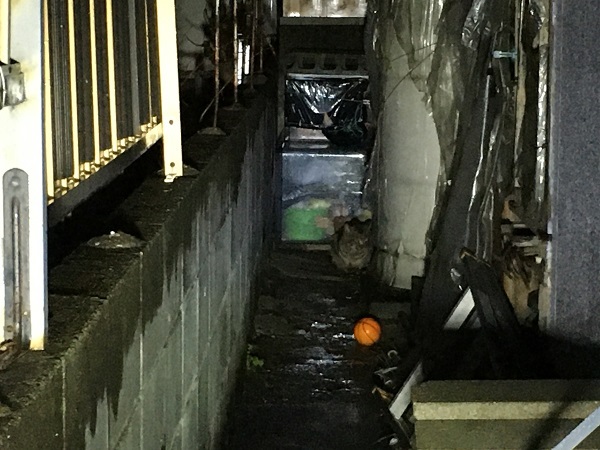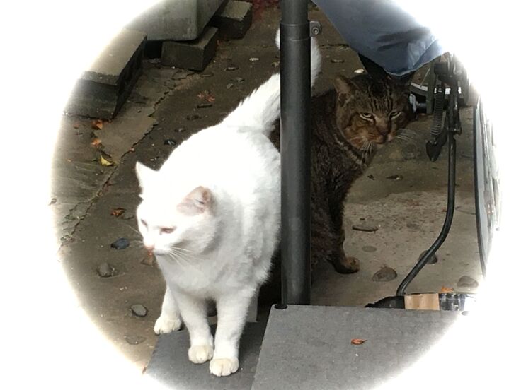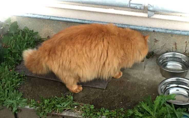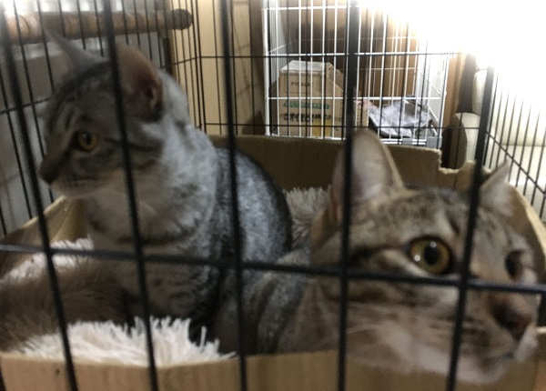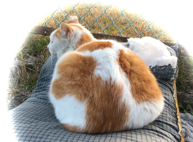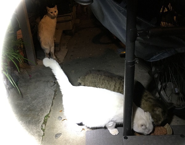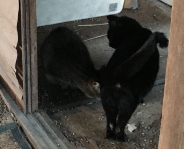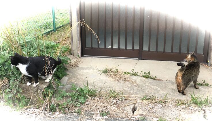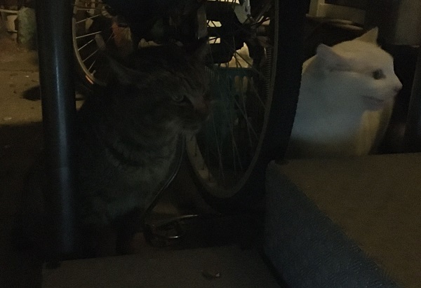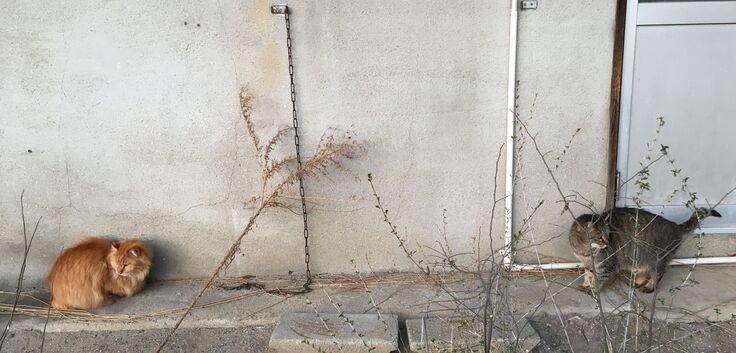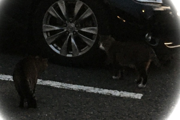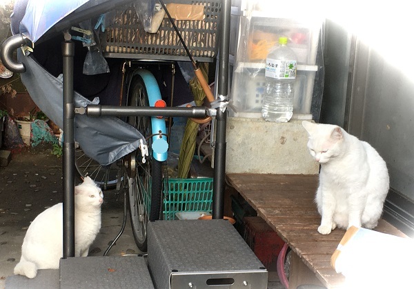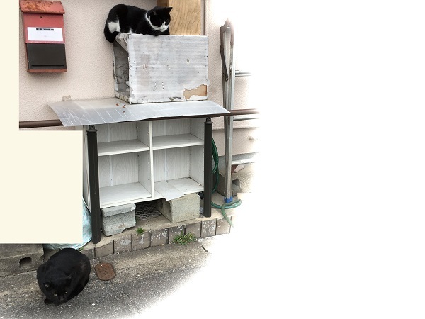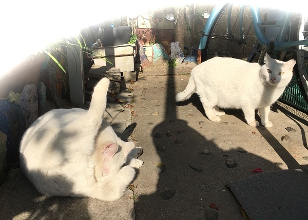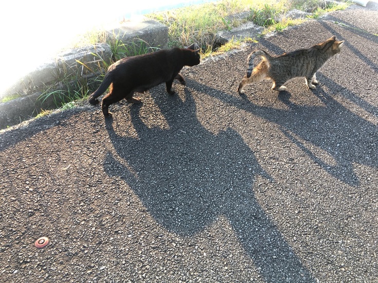 ジブリ邸にて、大らかな茶トラと器の小さい子。