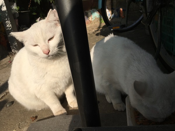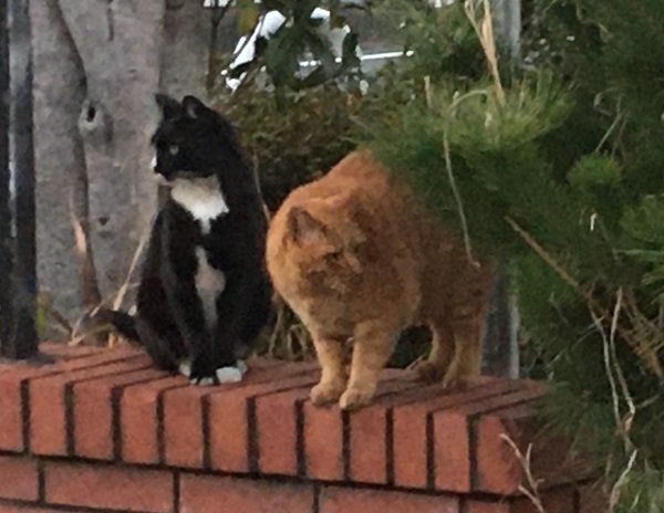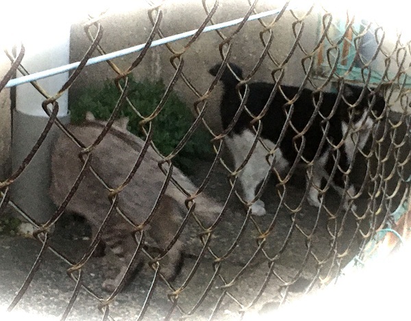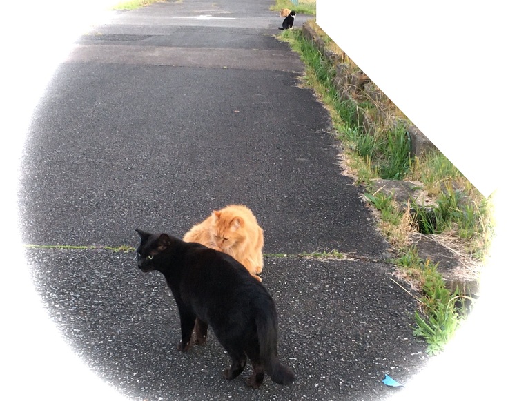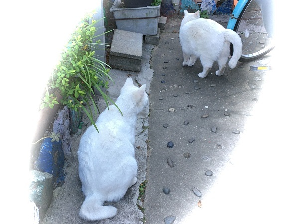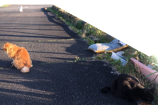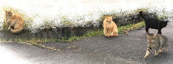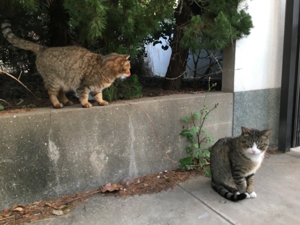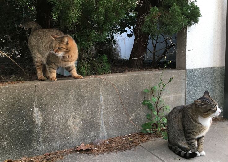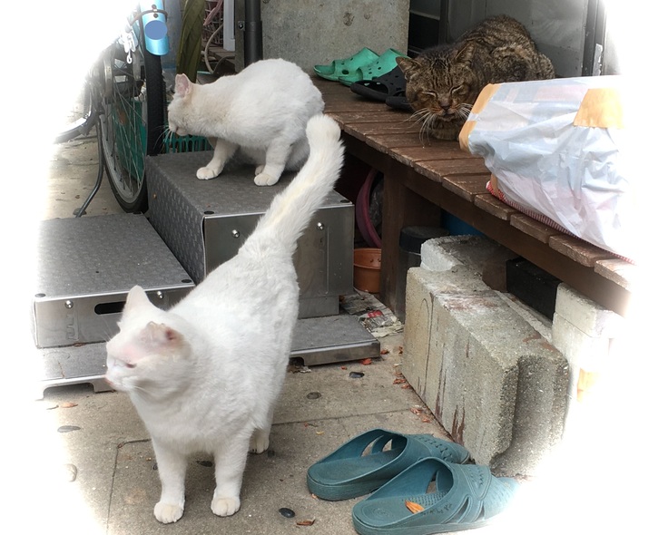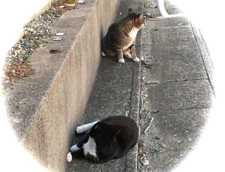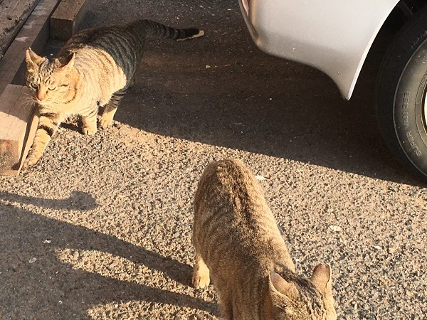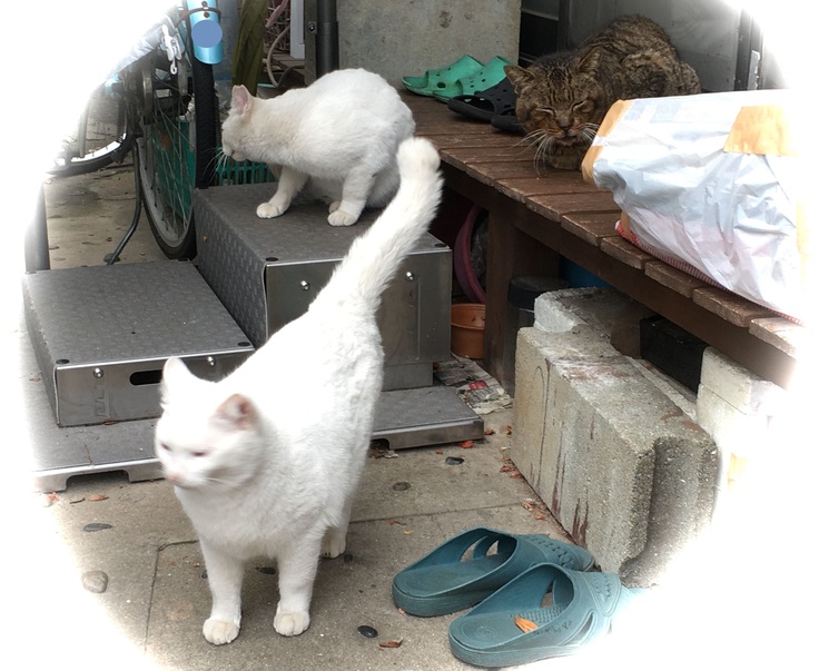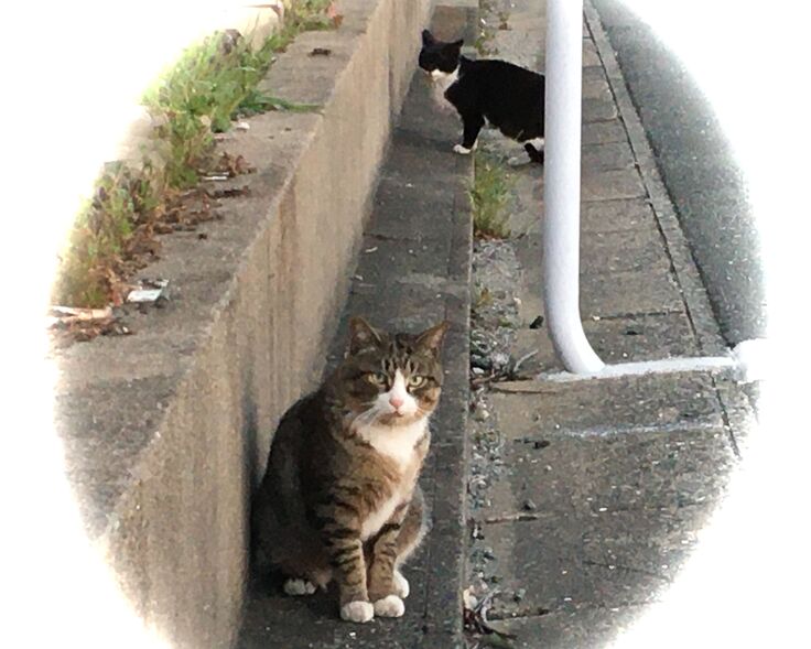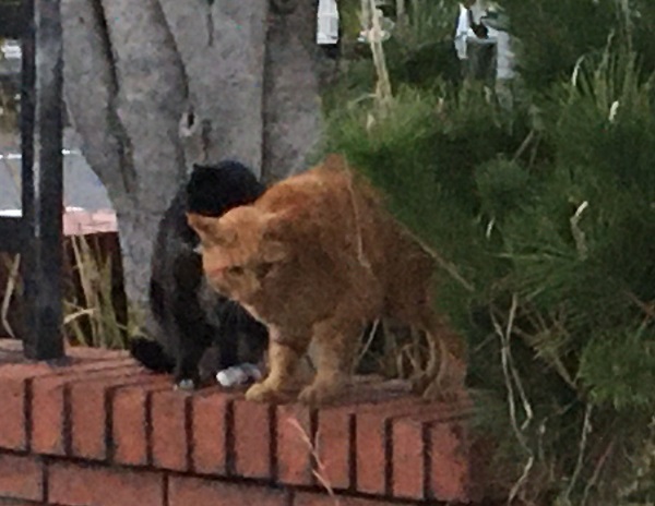 西川のりお邸周辺で。おおらかな茶トラと器の小さい子がいます。