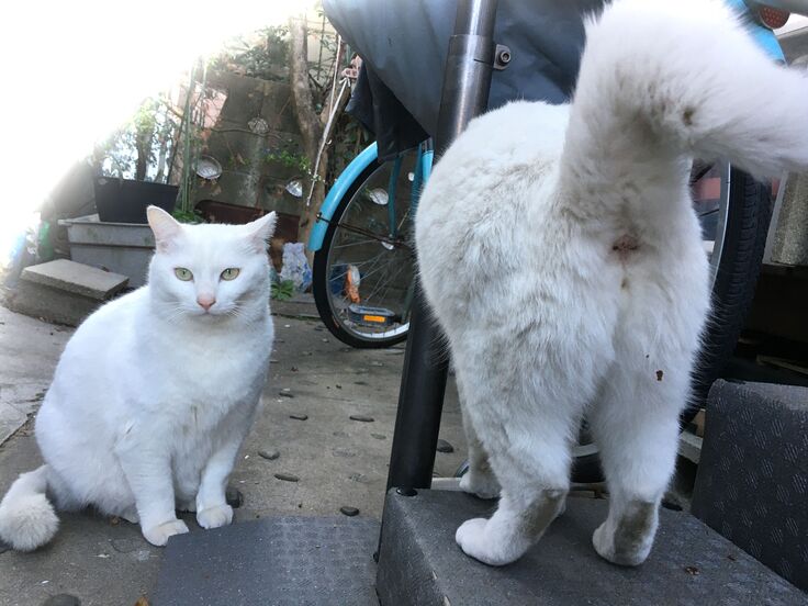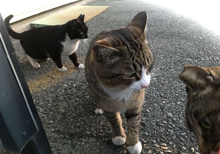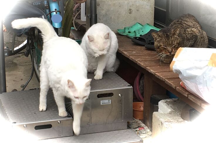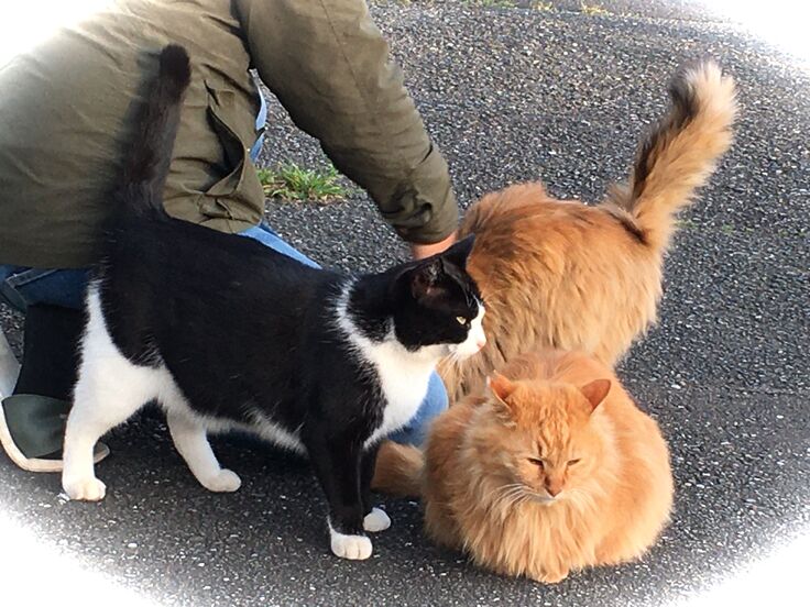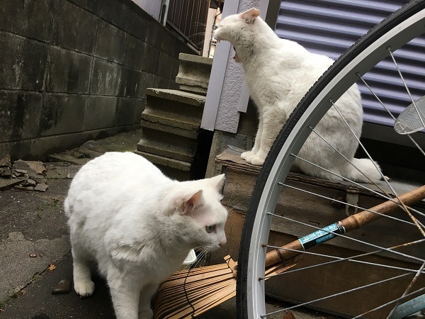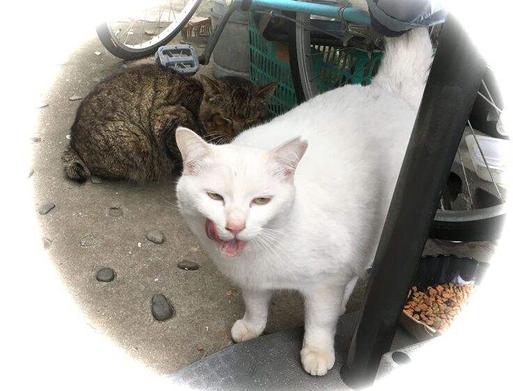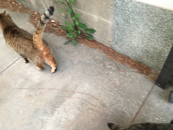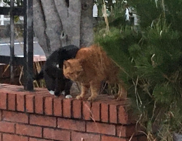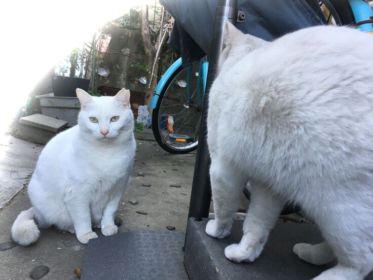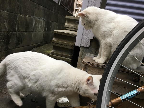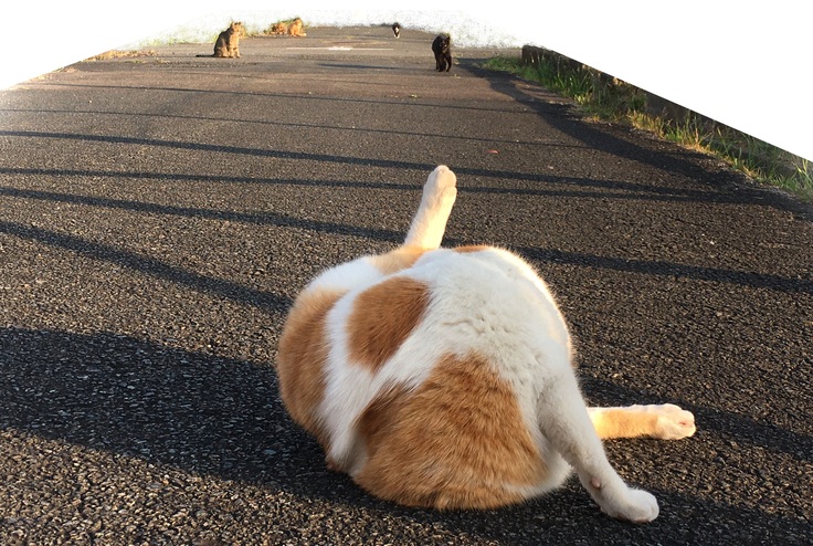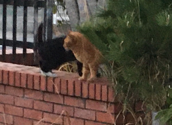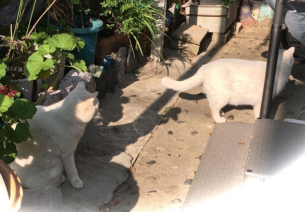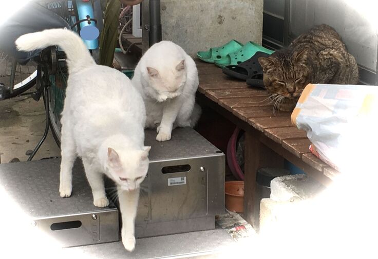西川のりお邸周辺で。おおらかな茶トラと器の小さい子がいます。
