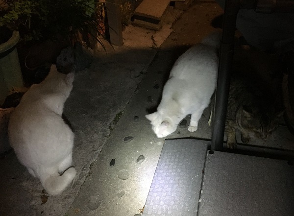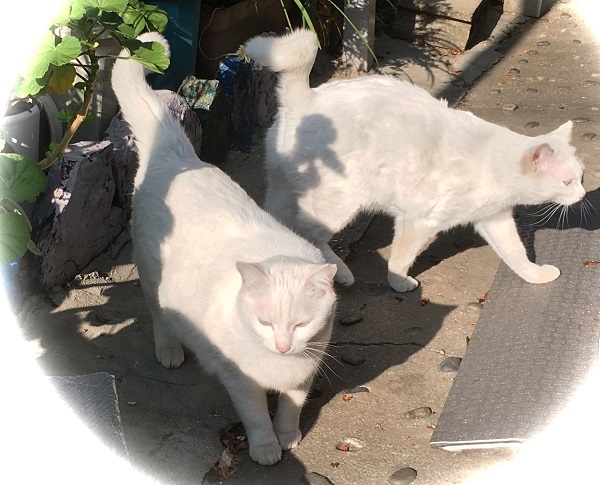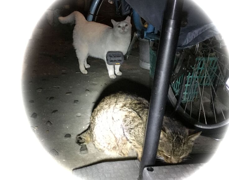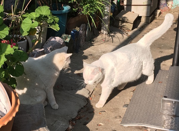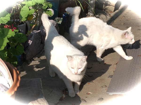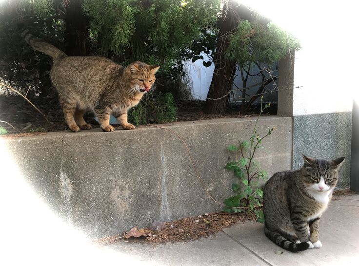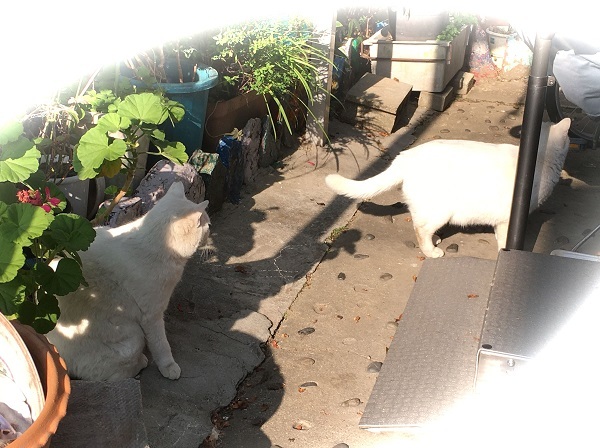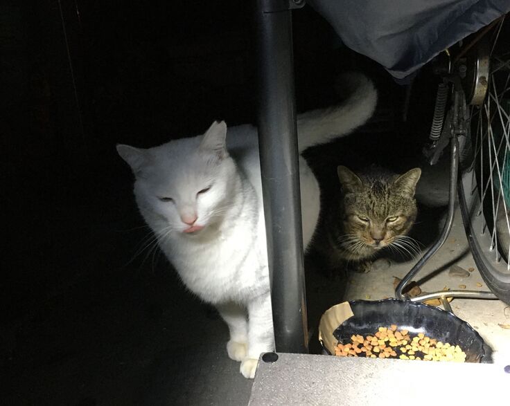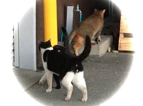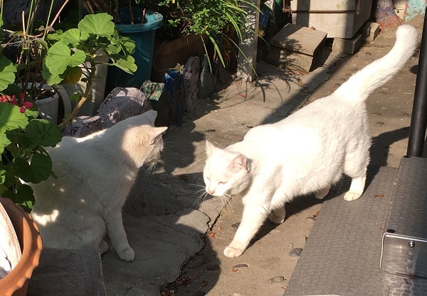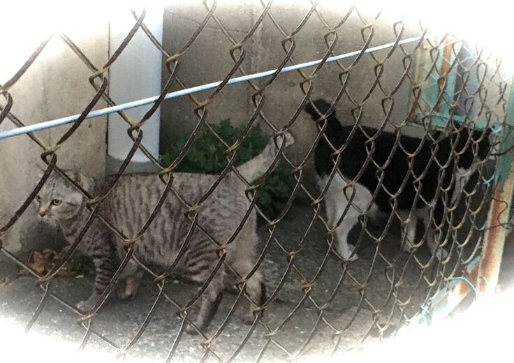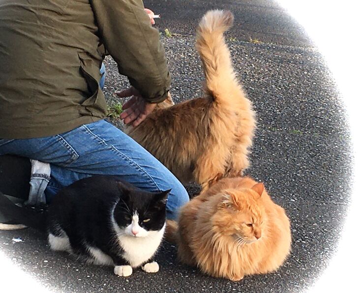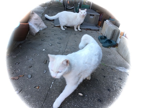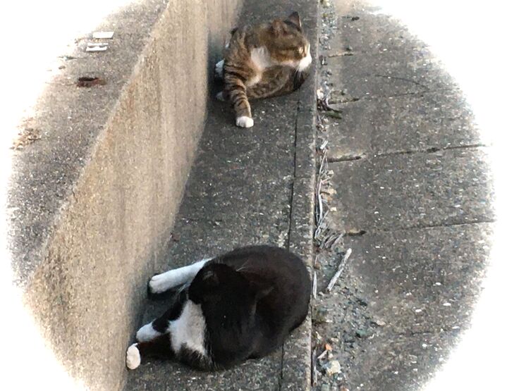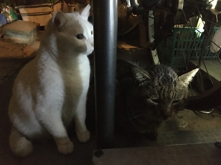 西川のりお邸周辺で。おおらかな茶トラと器の小さい子がいます。
