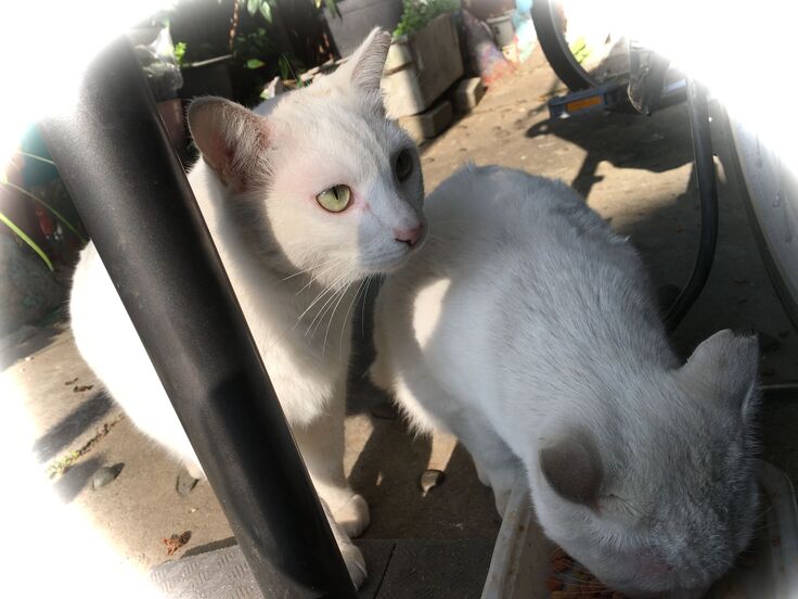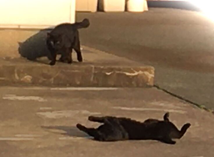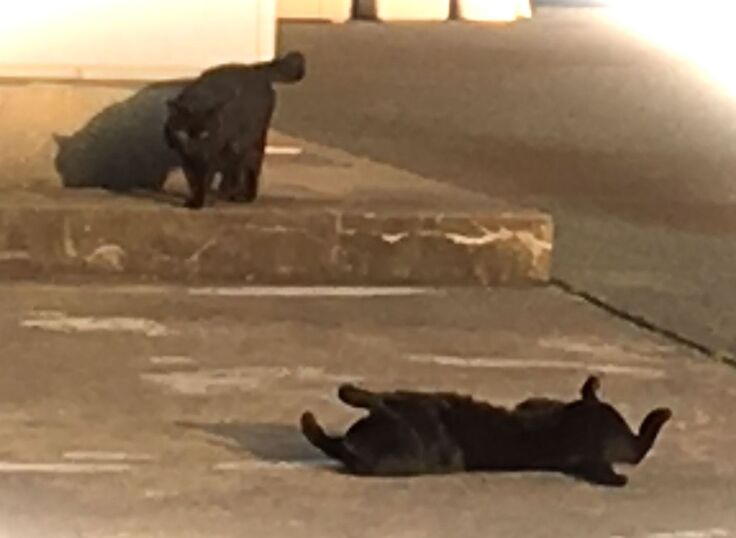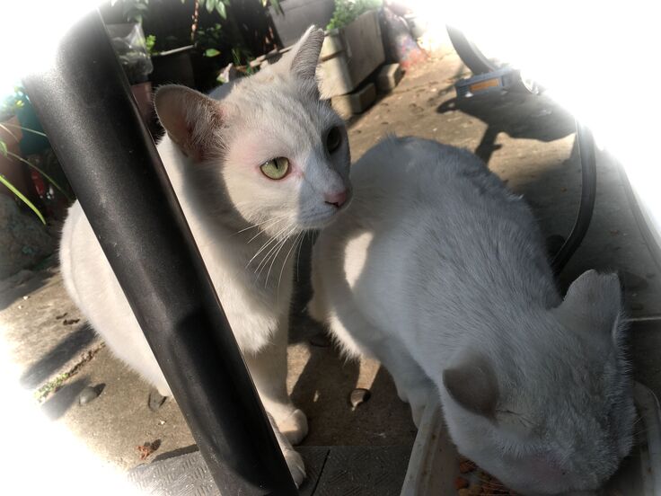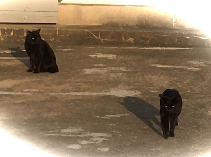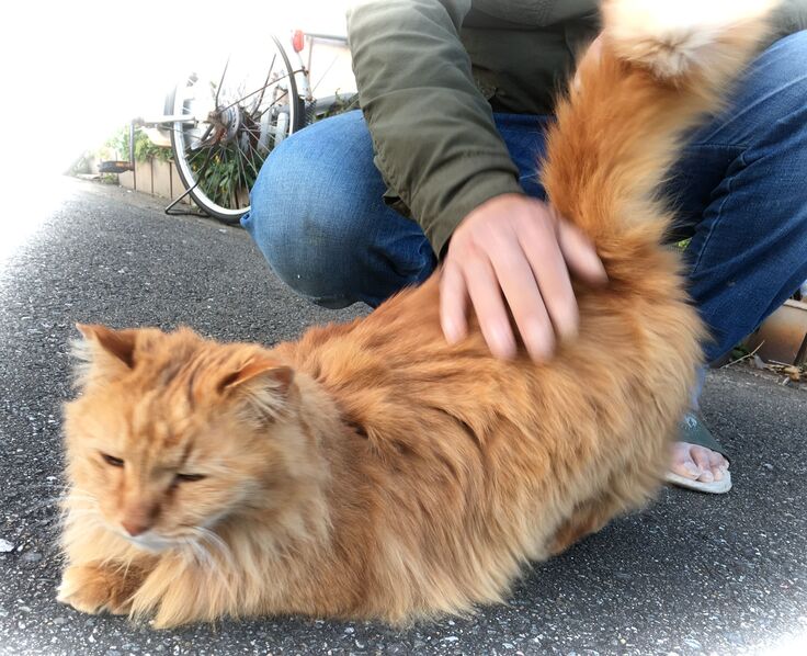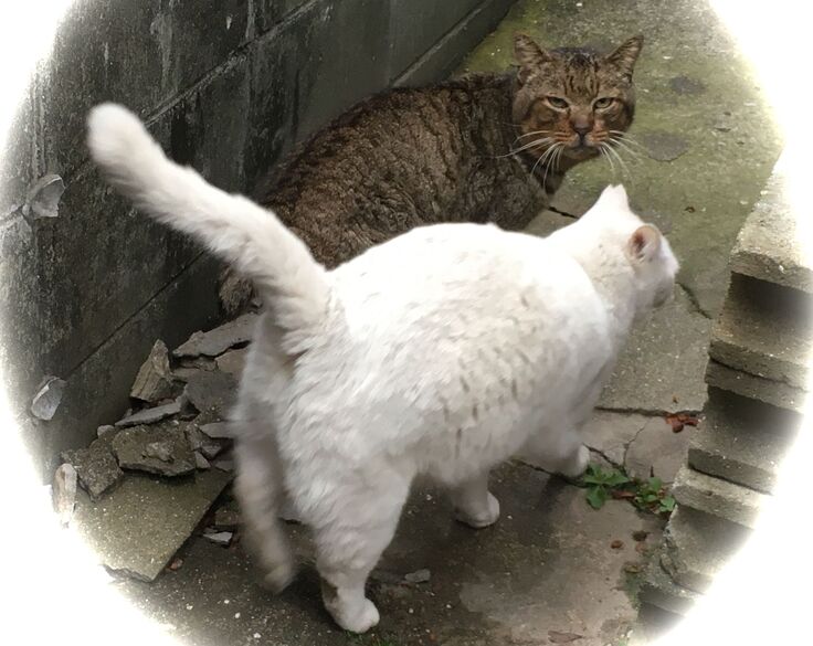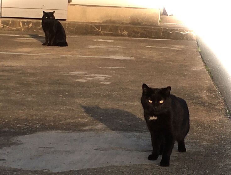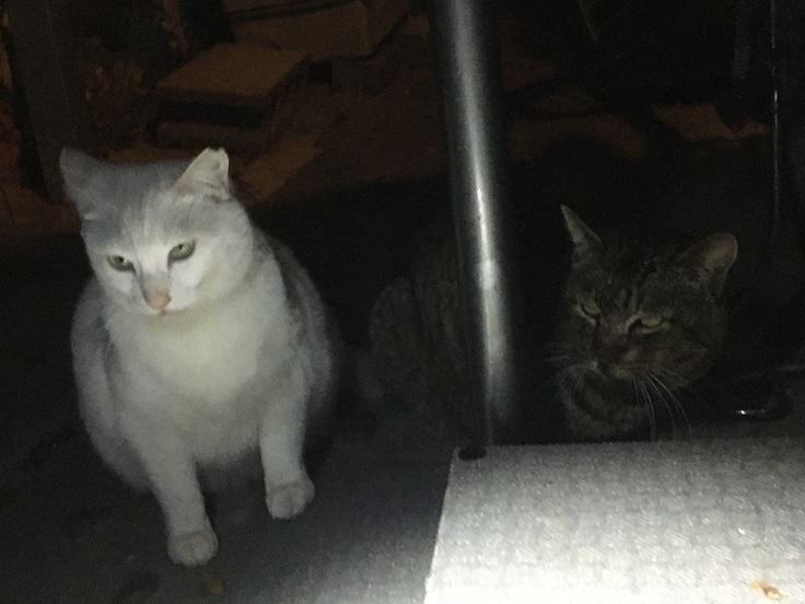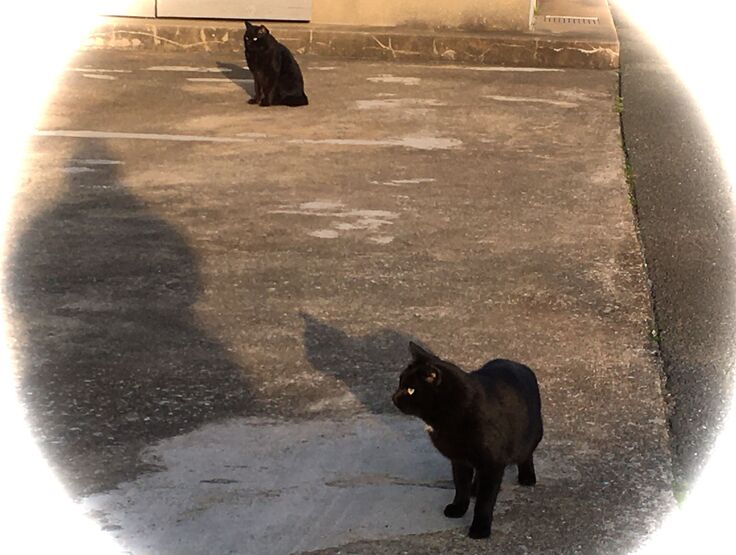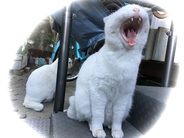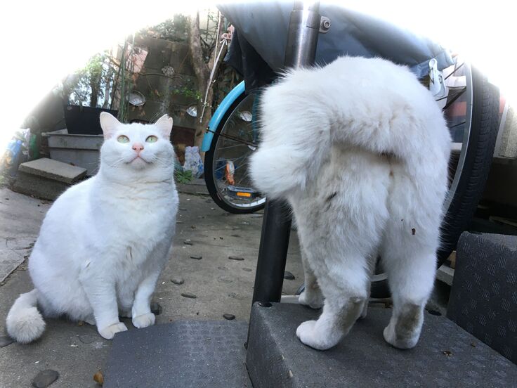 西川のりお邸周辺で。おおらかな茶トラと器の小さい子がいます。
