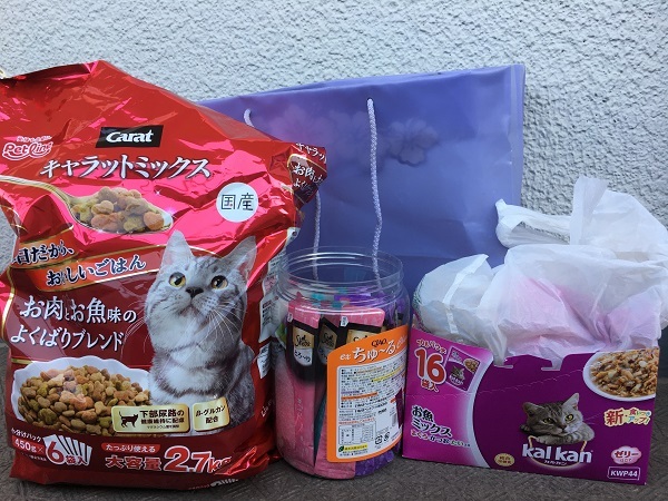 お母さんが猫たちのために買っておいたフードを、ご家族を通じて譲っていただきました。