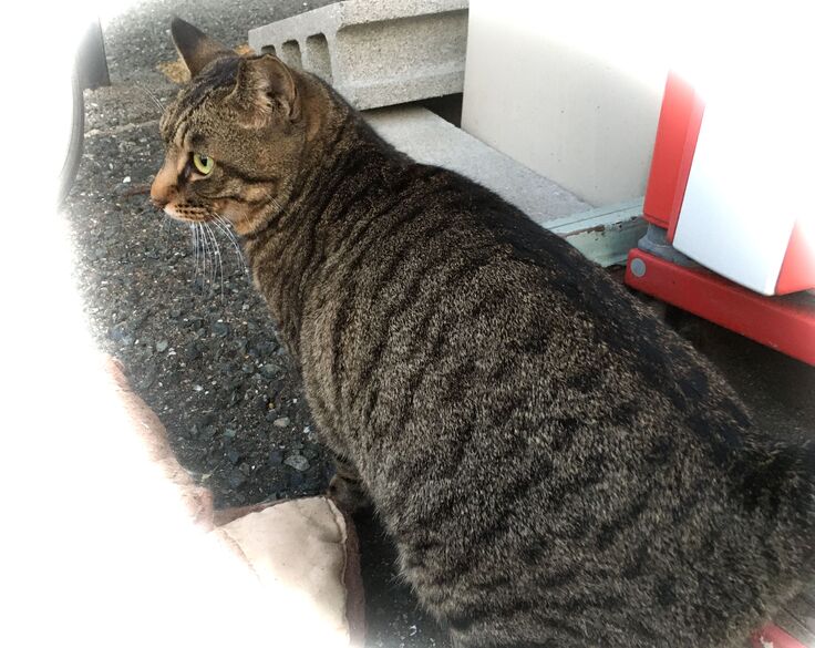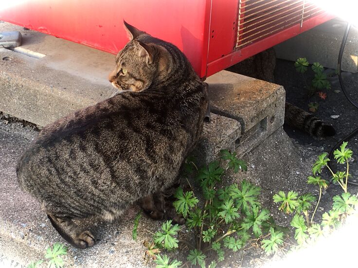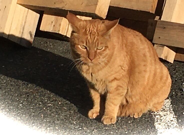 やまだ電機㈱(仮名)のエサ場におおらかな茶トラ。