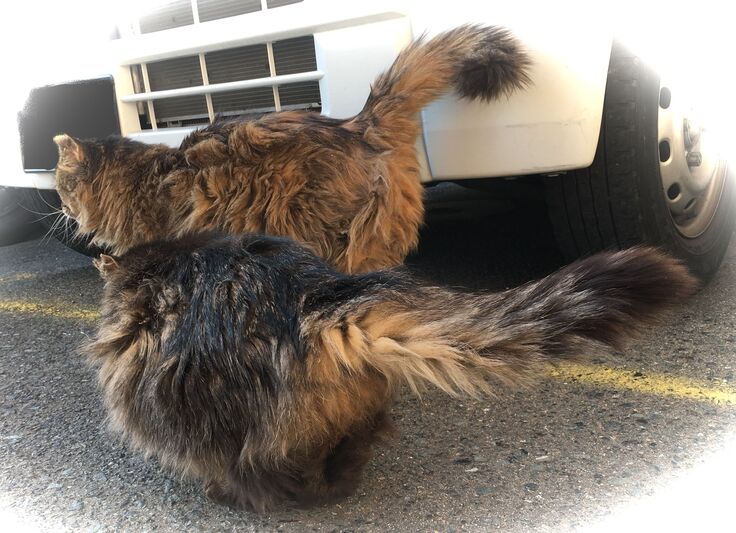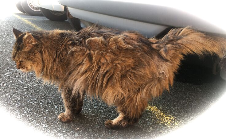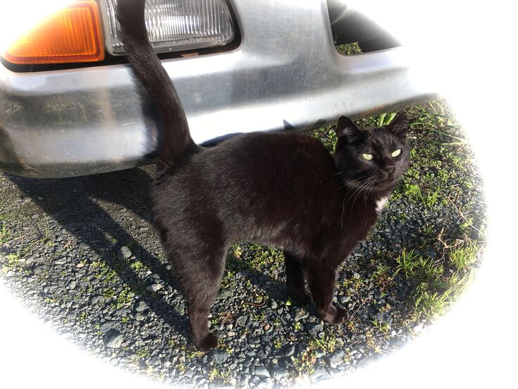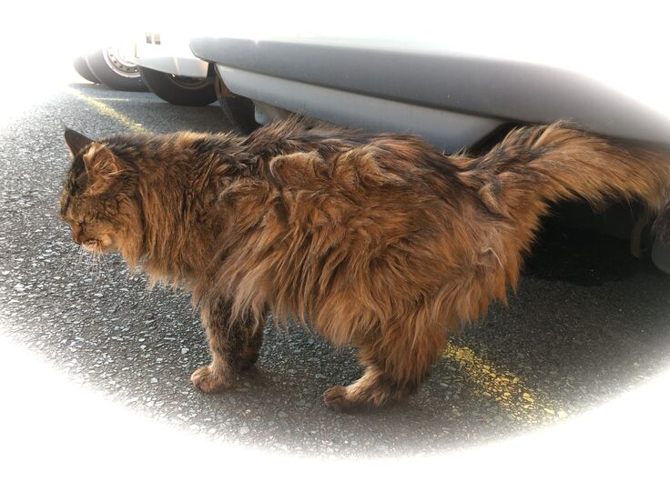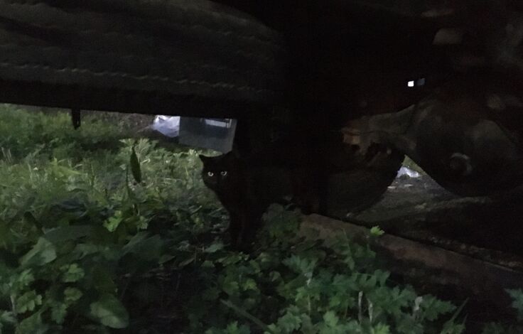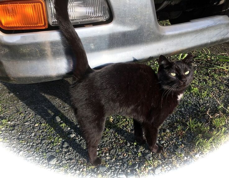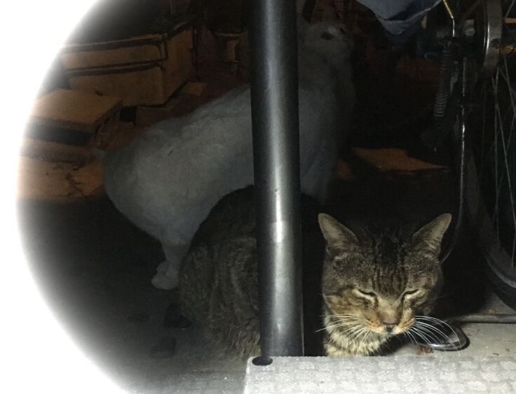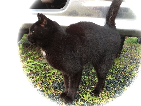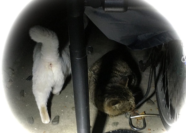 ジブリ邸の車の下にカイトくんがいます。