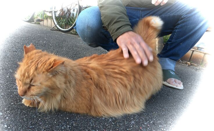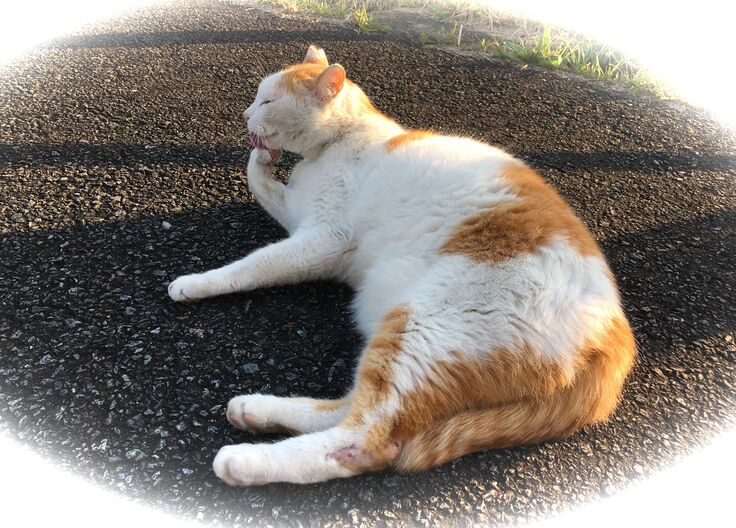 久しぶりに、やまだ電機(仮名)の緑の径に来ました。おおらかな茶トラがいます。