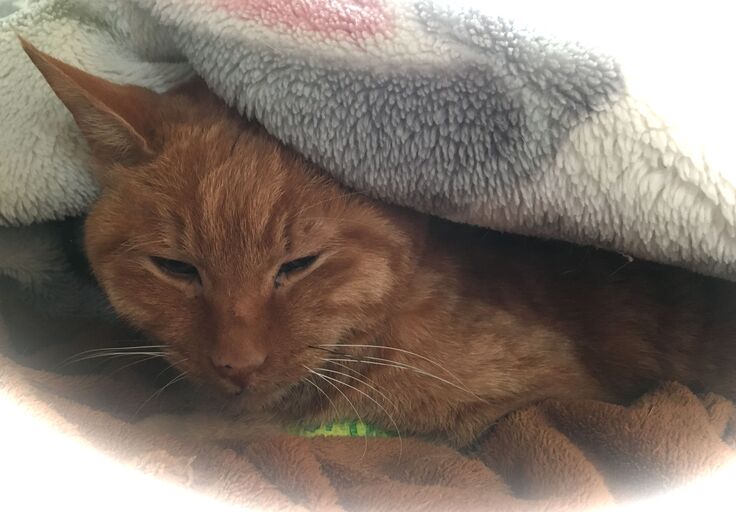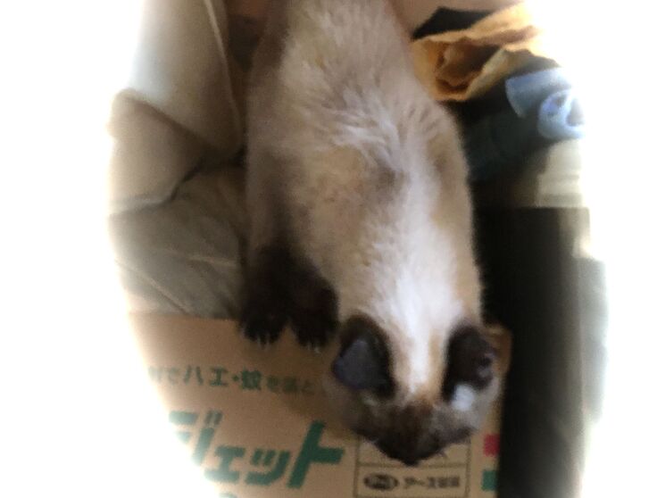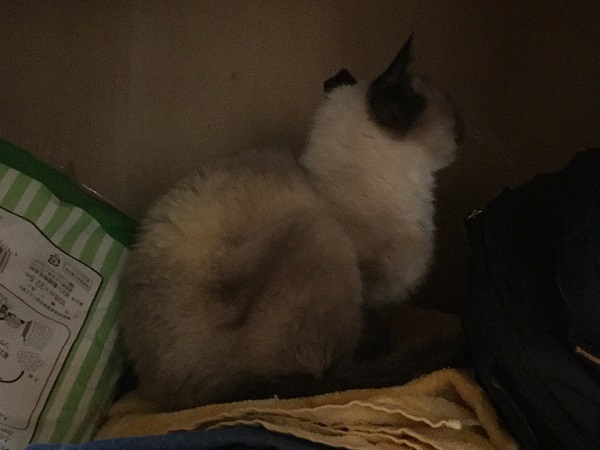 シャムたんは押入れの中でお休み中でした。この後点滴です。