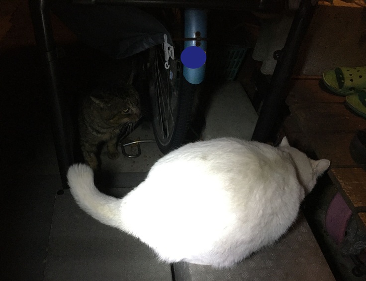 月子、ペルソナ、スパルタというメス猫たちの出産が重なる中で、劣位の個体だったのだと思いますが、その後に産まれた子猫のうち、ぴやくんが生き残り、立派なオスに成長してからは、表に出てきて一緒にくつろぐ姿も見せるようになり、よかったねと声をかけたものでした。