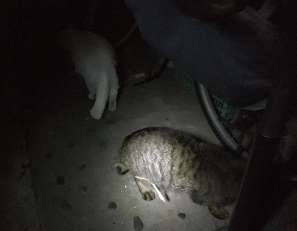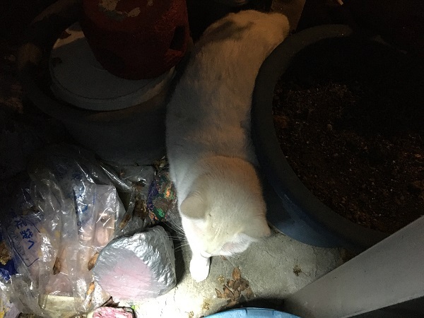 2021年頃、幻のサビが4匹の子猫を産みました、捕獲を目指してここをエサ場にしておりました。