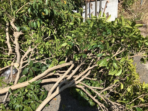 新たな場所のうぐいすの庭にて、金木犀が切られました。(T_T)
