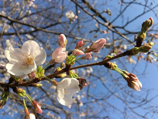 水色の空を背景に、咲き始めた桜が最高に美しい日に。