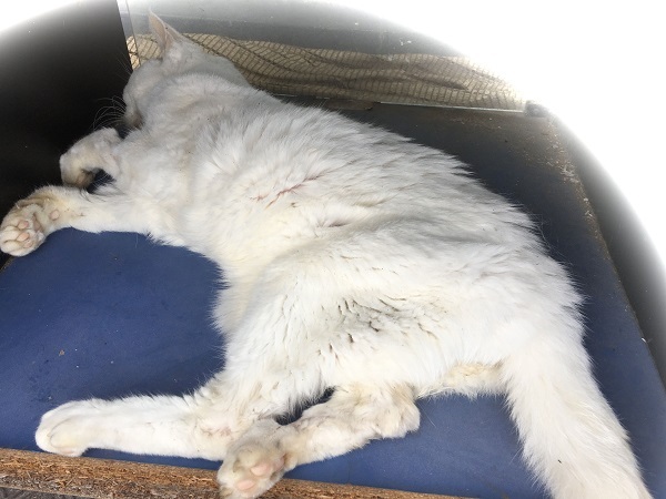 帰宅するとさくらは、自力でベランダに出て、日陰に横たわっていました。