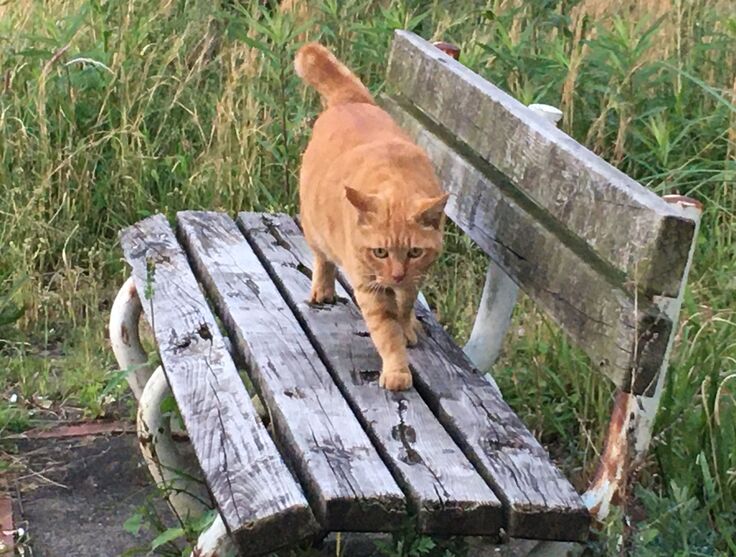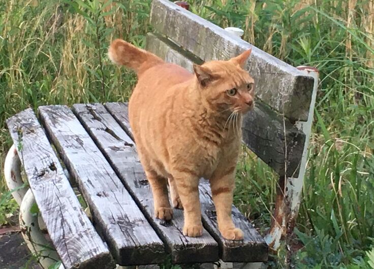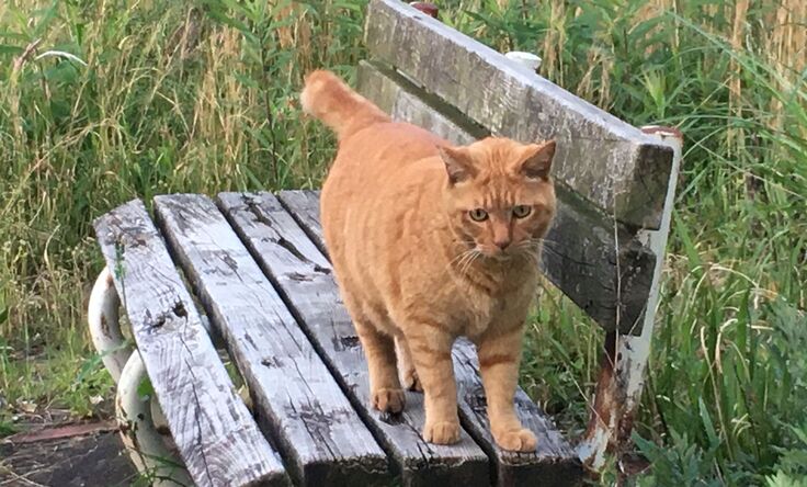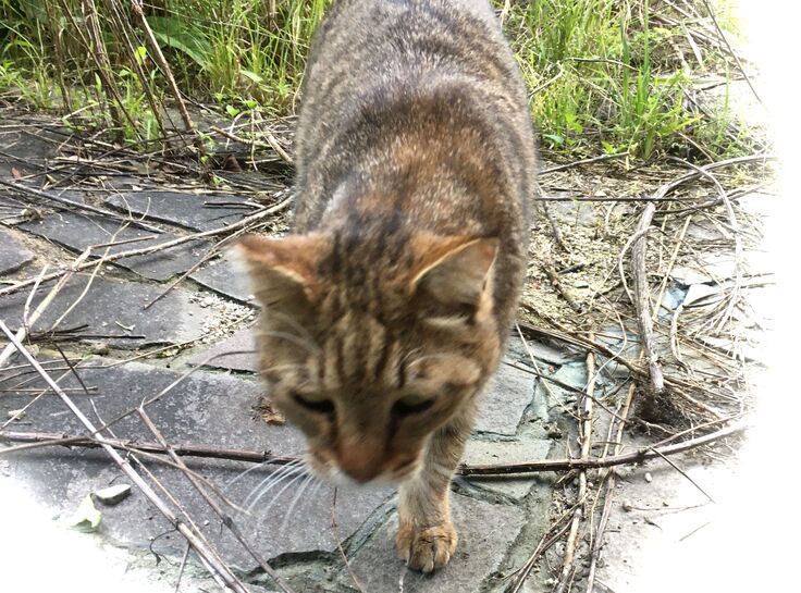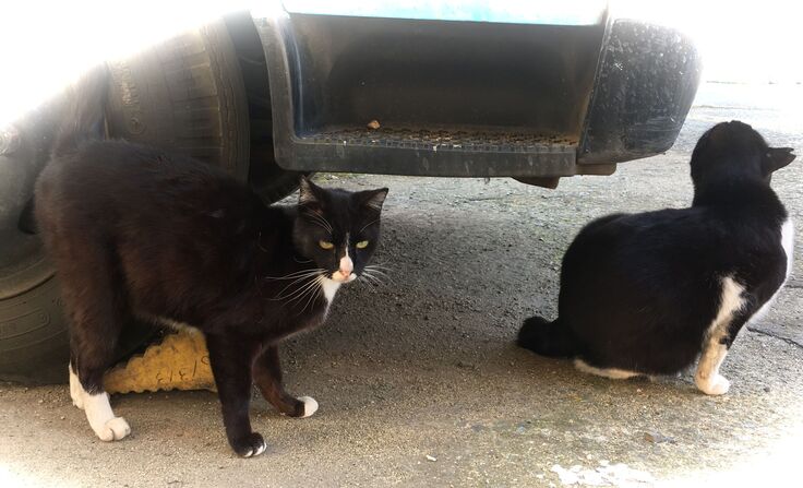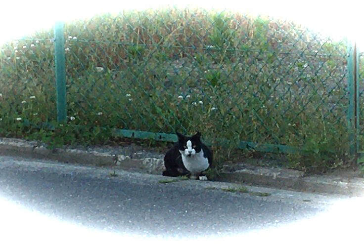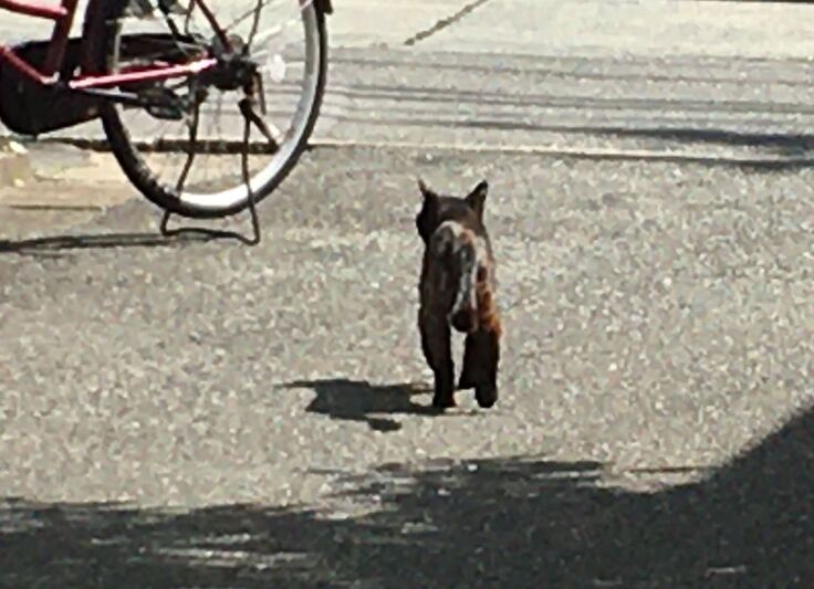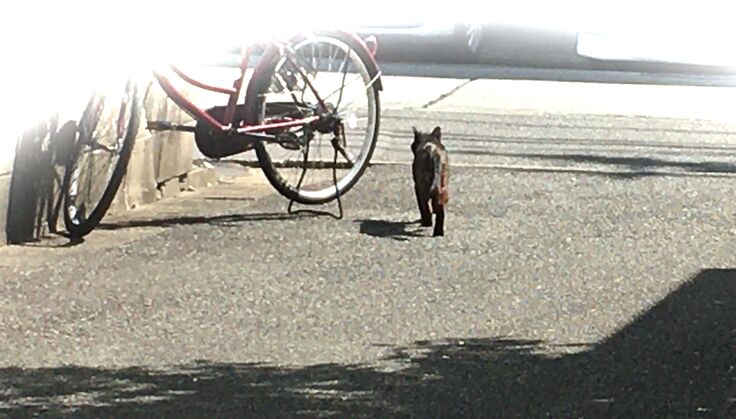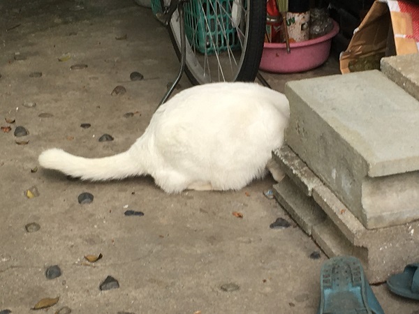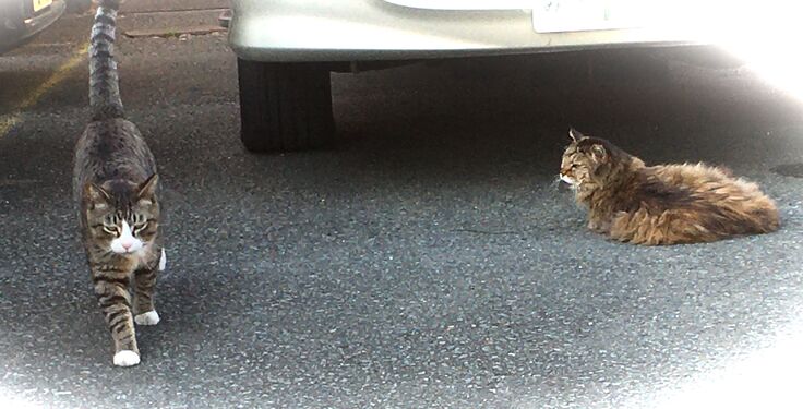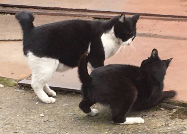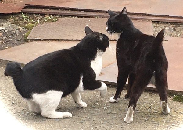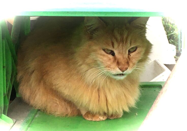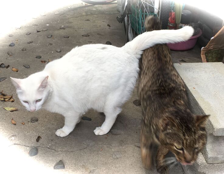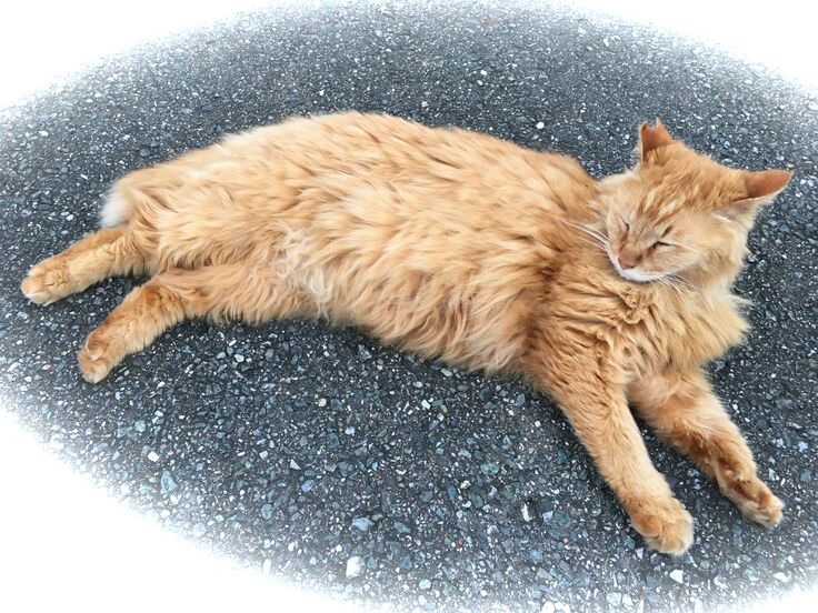 西川のりお社長邸近くにて、大らかな茶トラと器の小さい子。