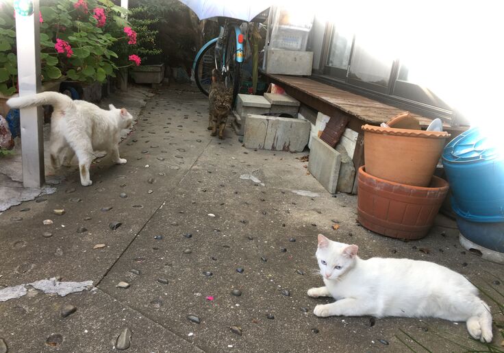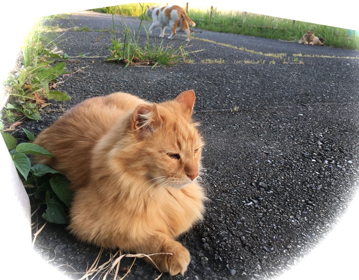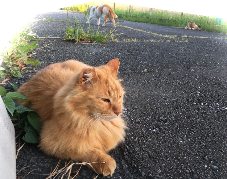 ジブリ邸に着きました。大らかな茶トラ。カイトくん。ぴやくん。