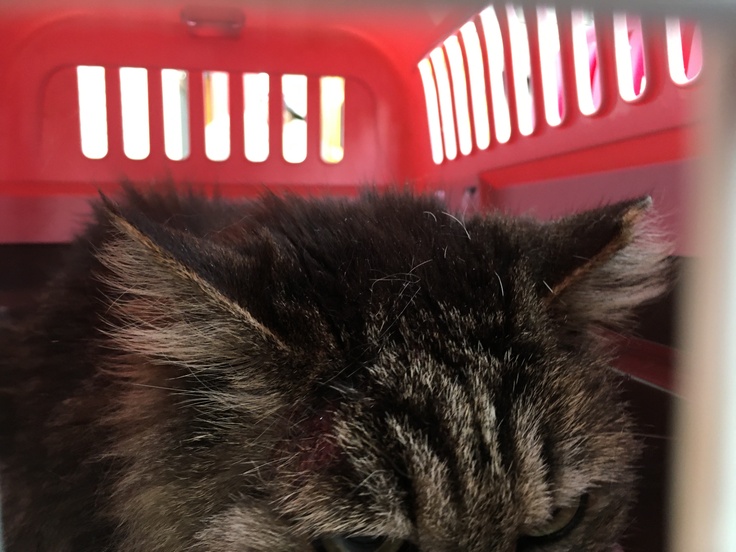 場所②に着きました。ブラッシングしてもらうぶぅにゃん。