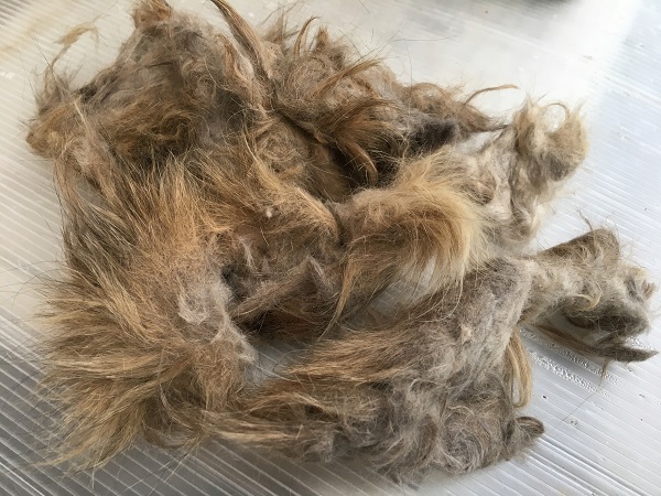 病院で刈ってもらった茶々モップの毛。フェルトと化しています。