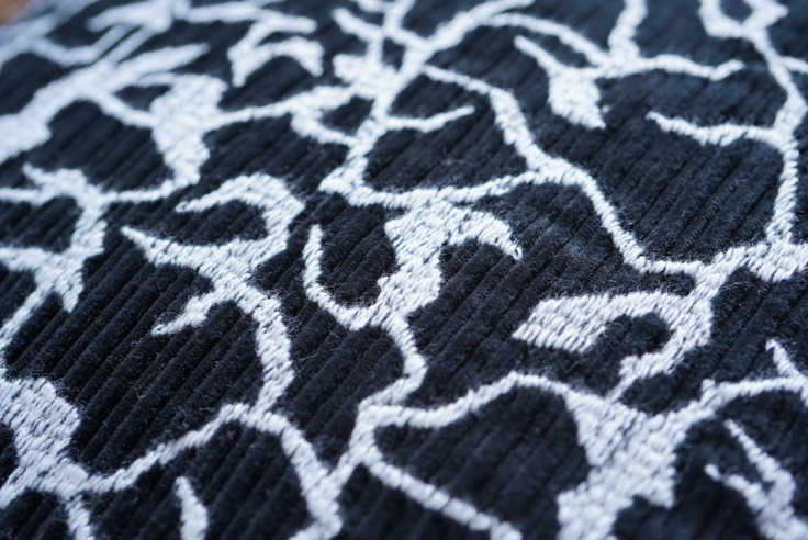 そこをあえて、厚みのあるコーデュロイ生地に刺繍を行っています。