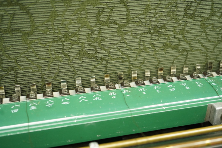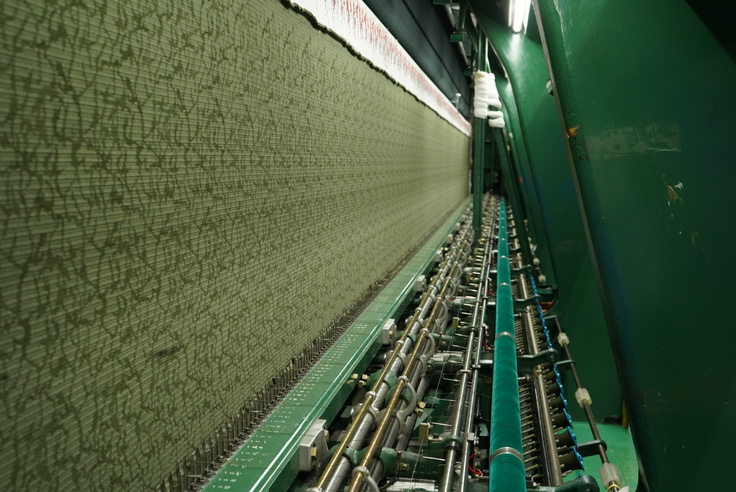 15mもある刺繍の機械に生地をセットしチクチク糸を通していきます。