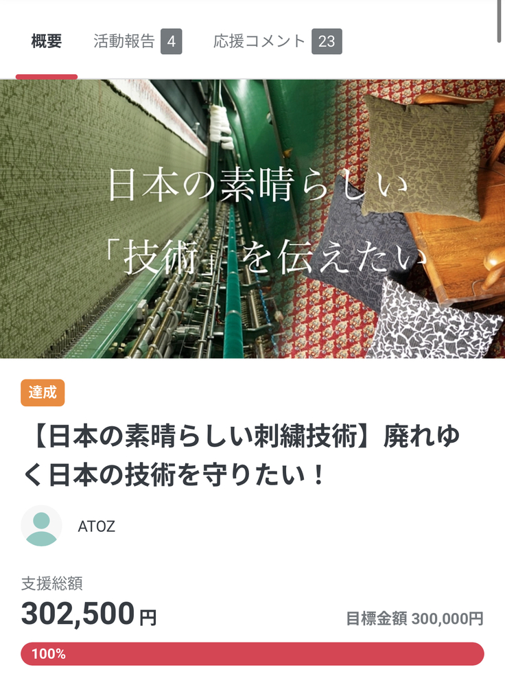 この度は、『日本の素晴らしい刺繍技術』廃れゆく日本の技術を守りたい! を支援していただいた皆様ありがとうございます!