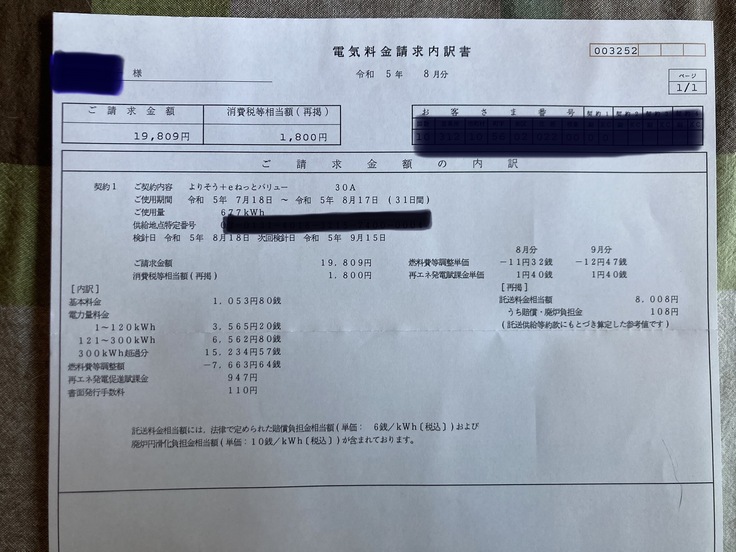 ちなみにつけっぱなしのスポットクーラーと5台の扇風機、夜のお世話の際につける電気で月の電気代がきました。
