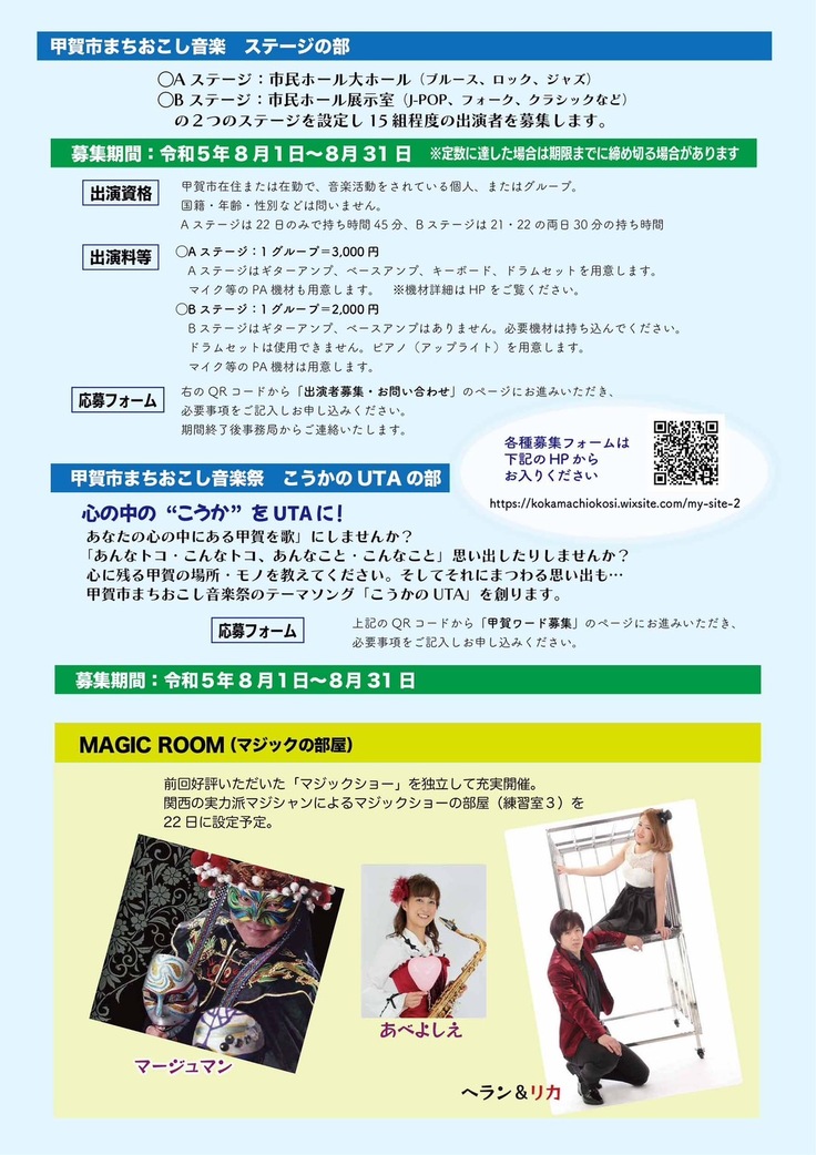 令和5年10月21日22日の両日音楽祭を滋賀県甲賀市あいこうか市民ホールで開催しますのでぜひご来場ください。