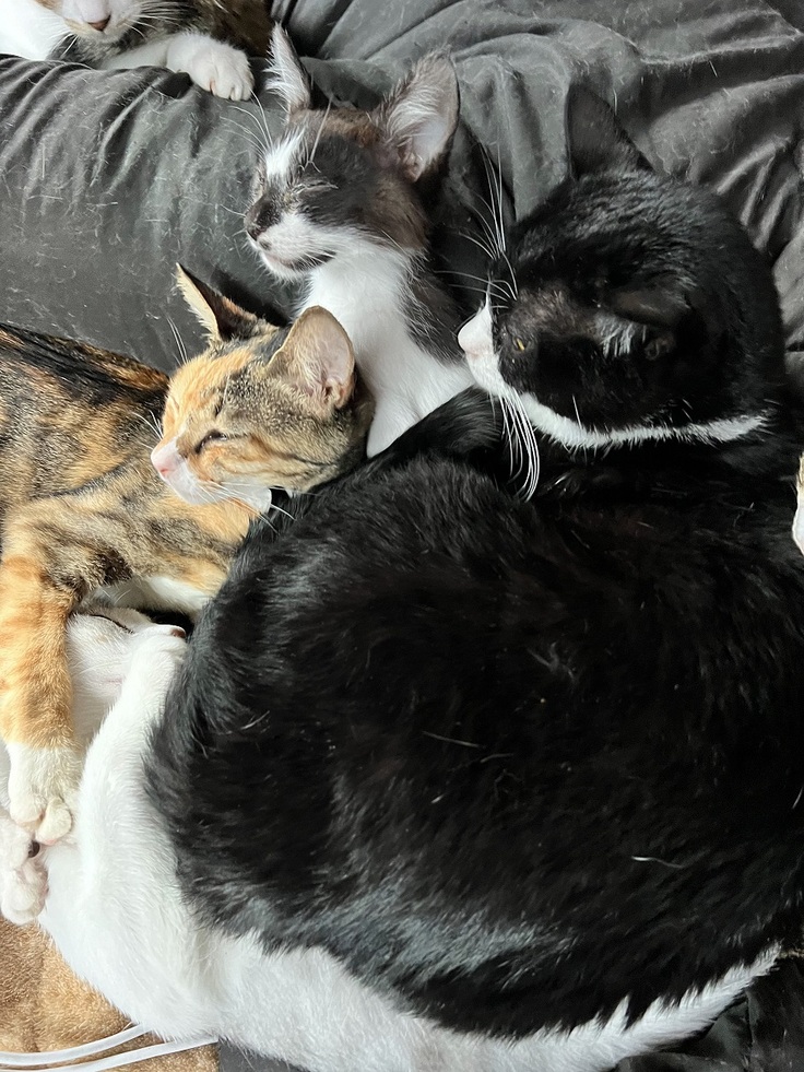 ここ数か月で成長した、わがままボディそのままに子猫へダイブ。