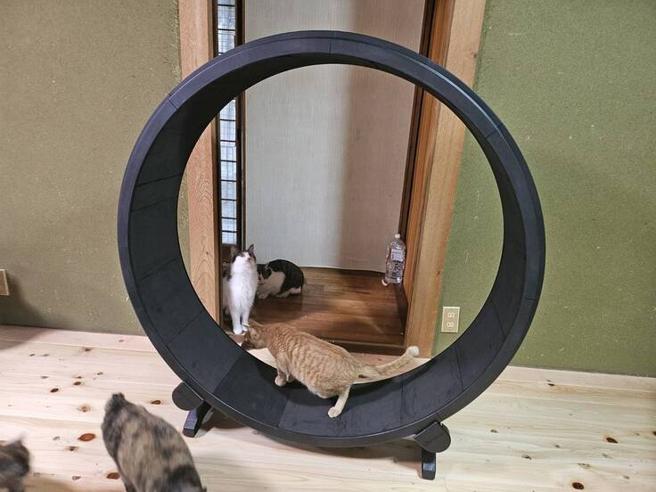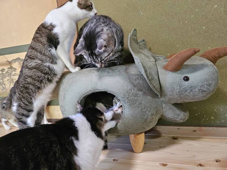 我が家の猫たちはというと、新しいおもちゃに興味津々です!