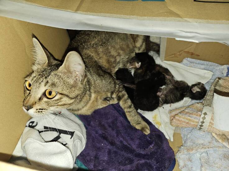 飼い主さんが帰ってこられても、少しの間は我が家で様子を見た方が良さそうだなと思っています。預かり猫ちゃんたちは全員外猫なので、ひとまず赤ちゃんが大きくなるまでは室内が良さそうです。