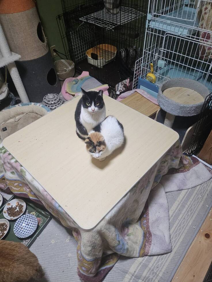 白黒(プラム)は奈留島という、五島列島の中の島から海を渡ってきた子です。はじめは警戒心が強すぎて慣れませんでしたが、レントという老猫と過ごすうちに心を開いてくれました。