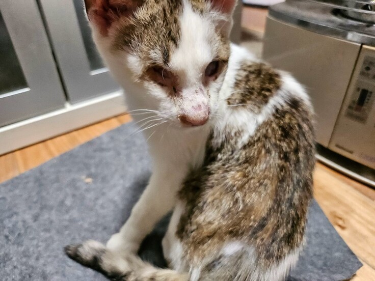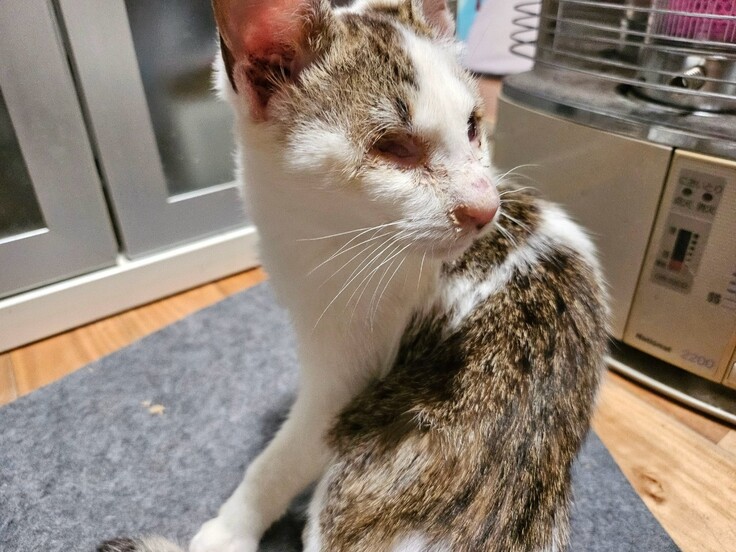 右目は眼球が潰れており、左目も完全に膜がかかっており視力はほぼゼロ。
