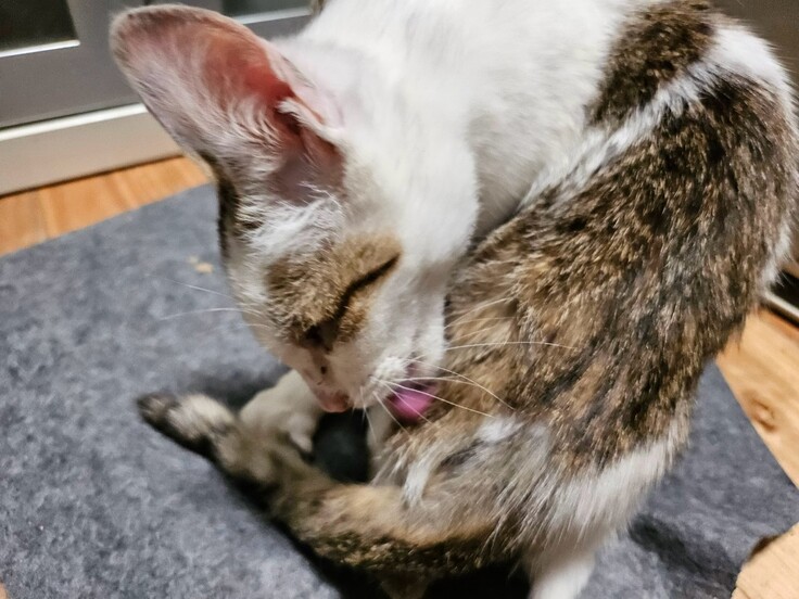 現在は猫カビも併発していますので、ケージの中で過ごしています。
