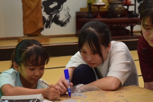 お寺での事業ということで、坐禅体験で長い時間の坐禅をやりきる体験や精進料理を禅寺の作法でいだだく体験、苦手な食材も食べてみるチャレンジもする事になりそれだけなら、禅寺体験ですが、てらこやでは、大学生と思いっきり遊ぶ事や、何かをつくり上げる体験もします。