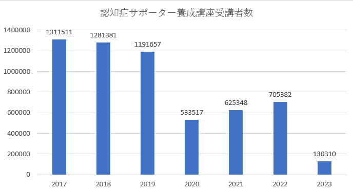 認知症施策としては、2012年頃より認知症キャラバンメイト、サポーター養成講座を開き、認知症に対する理解を深める努力を国の政策として進めてきました。