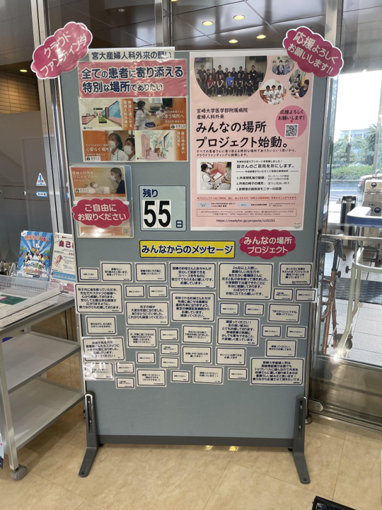 病院の入り口にクラウドファンディングのポスターを掲示しています!