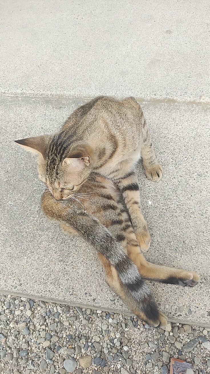 親ネコちゃん達はお出かけ中です。車庫に親ネコ1匹くつろいでました😆