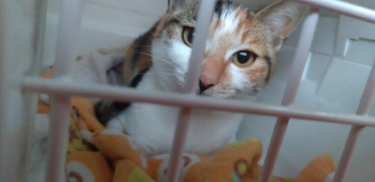 病院に行く前は、ニャーニャー鳴いていてかごの中で暴れてました。