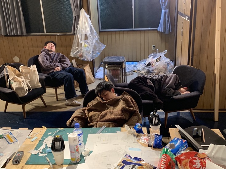 建築ズだけでなく建築学科の友人達も尽力してくれたおかげで、目標の成果物を作成することができました!(手伝っていただいた方々、本当にありがとうございます…)