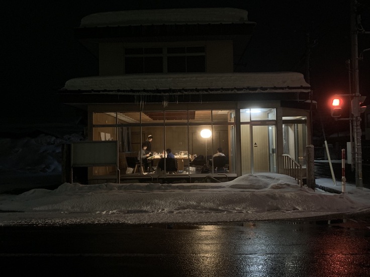 作業場所は、十字路を挟んで空き家の対角線上にある「東町ポスト」の1Fを使わせていただきました。この建物は元東町郵便局だったものをリノベーションしたものです。道路に面する北側が全面ガラスとなっているため、地域の人々が自分たちの活動風景を簡単に見ることができ、自分たちも東町を行き交う人々のそばで活動できたことで、まちと一体になって活動している実感が生まれました。