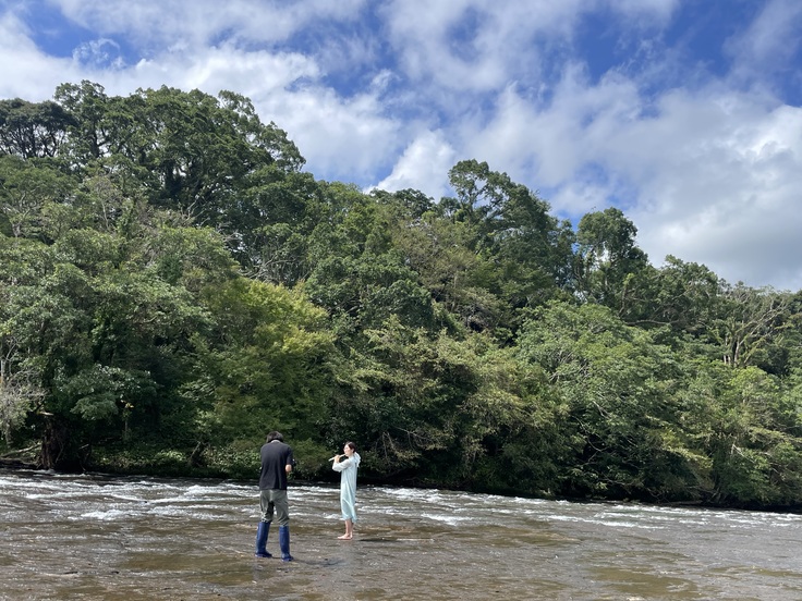 衣装は同じ協力隊の吉屋さん(草木染め作家)、そして映像はお隣・南大隅町の元協力隊の山下さん(映画監督)にお願いしており、協力隊同士のコラボが生まれています。