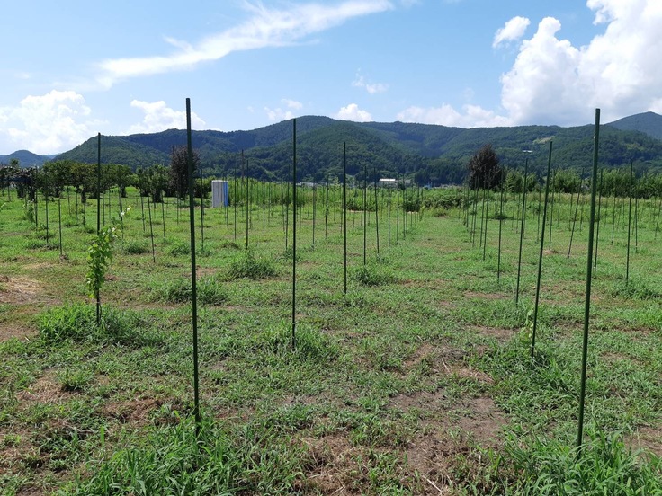 自社ワイナリーにて、自社畑での原料確保が将来的に必要となってきます。プロジェクト実施として、現在の園地にぶどう苗の追加植え込み、垣根整備に充てていきたい。