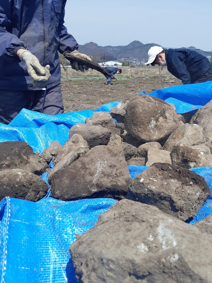 今週は整備した時に出た大きな石を畑の隅に寄せる作業を障がい者のスタッフと一緒に行っています。