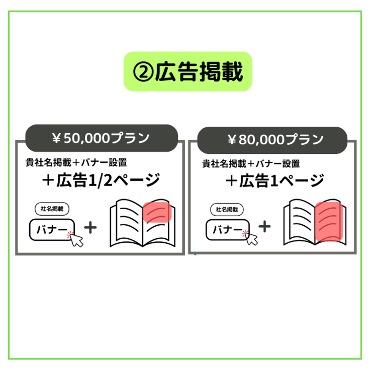 そして①協賛者一覧へお名前掲載,②広告を掲載いたします。