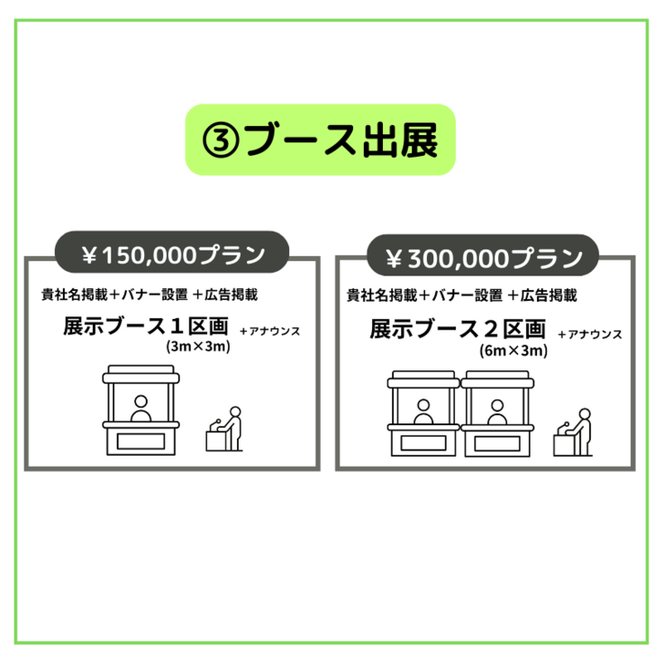当日のブース出展は3m×3mを1区画とし,「1区画」「2区画」のプランをご用意しました。
