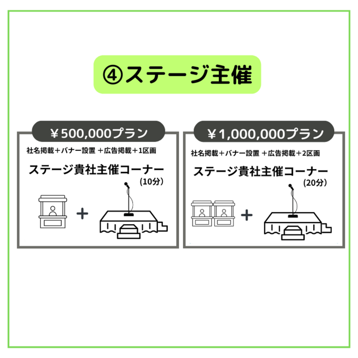 ステージ主催は10分,20分間(20分×1回でも10分×2回などの使い方でも可能です)